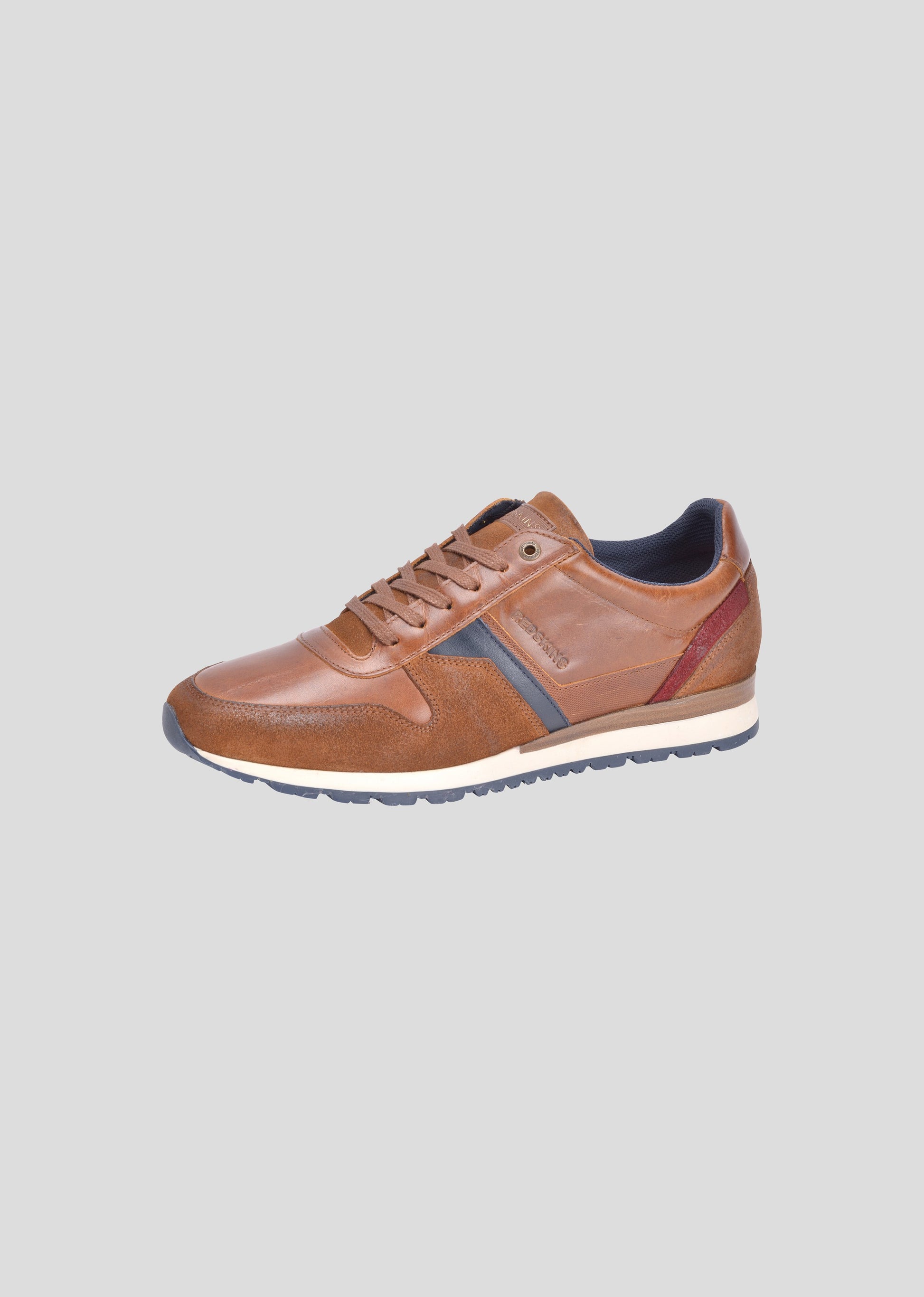 Les baskets basses NOIX sont confectionnées en cuir, le dessus est en toile et cuir, la semelle en gomme, fermeture à lacet et talon plat.