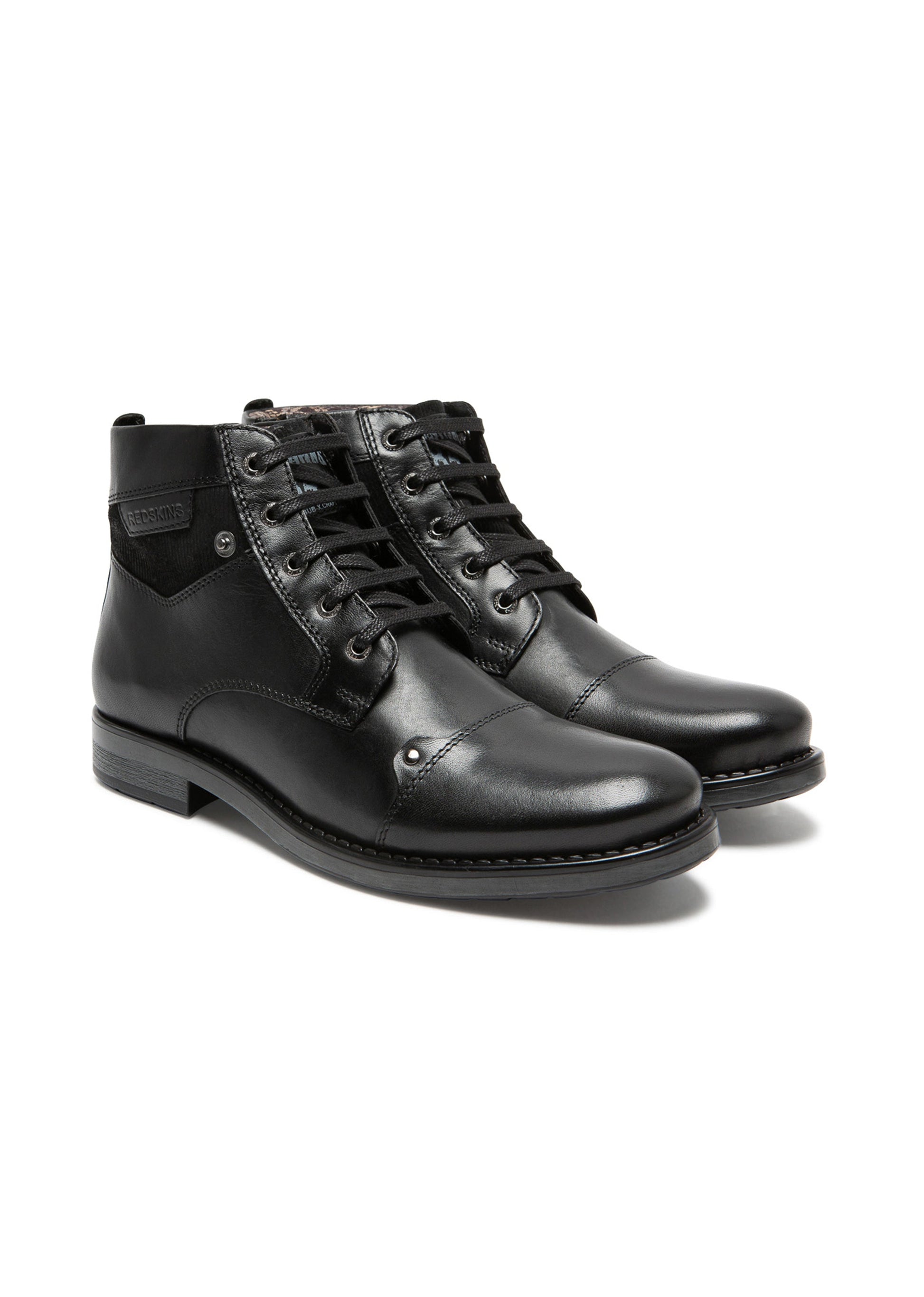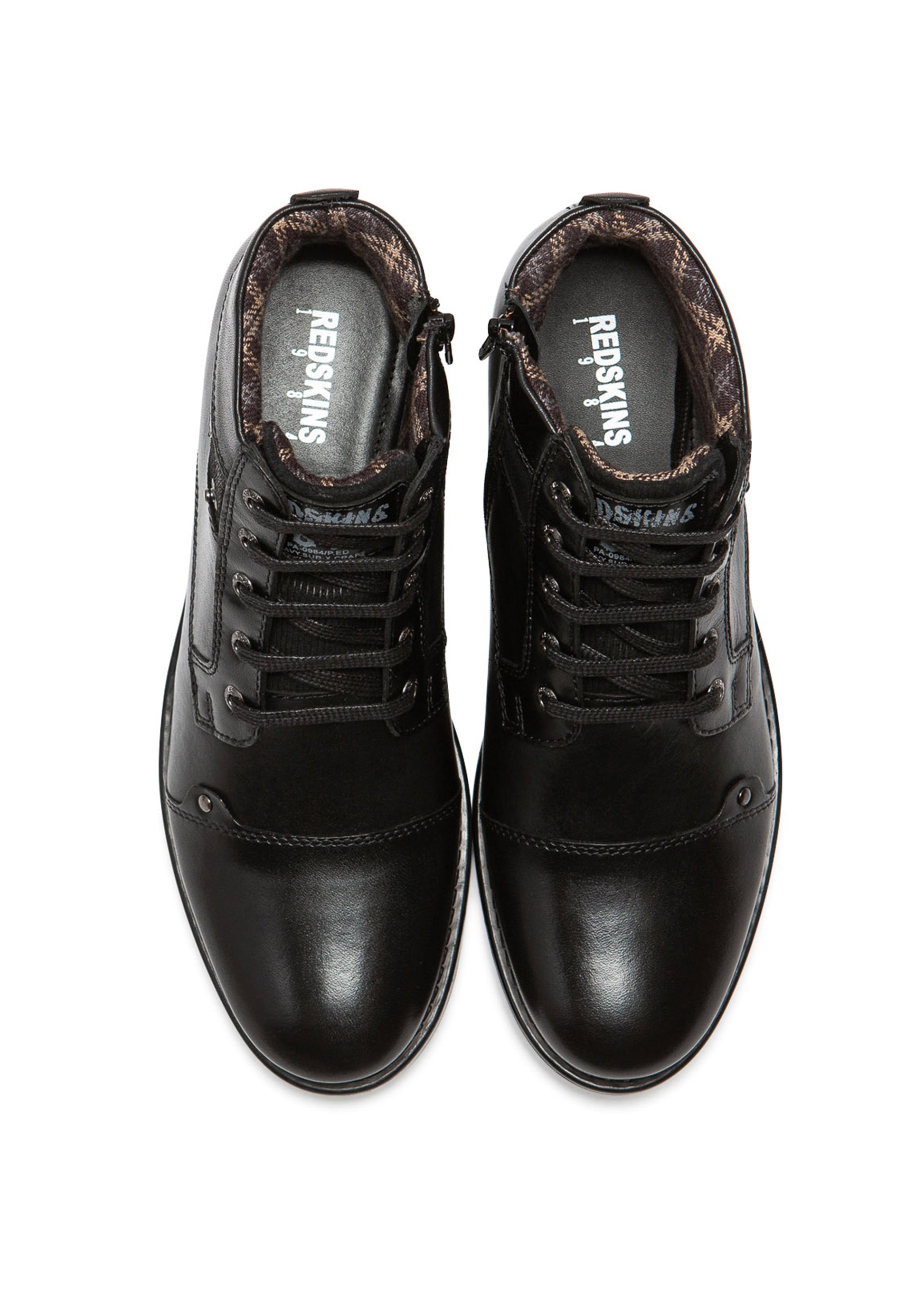 Découvrez La chaussure NISSA, Dessus pictograme : Cuir, Doublure pictogramme : Toile & cuir, Hauteur du modèle : Mi-haut, Hauteur du talon : 2cm, Semmelle : Gomme, Type de fermeture : Lacets, Type de talon : Droit, Première de propreté : leather black, Type de bout : Droit
