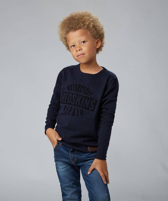 Pull col rond en coton, print velvet devant.