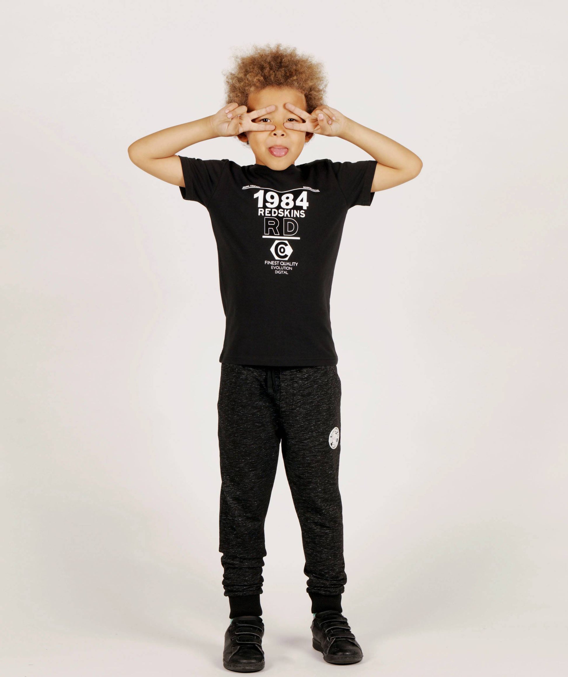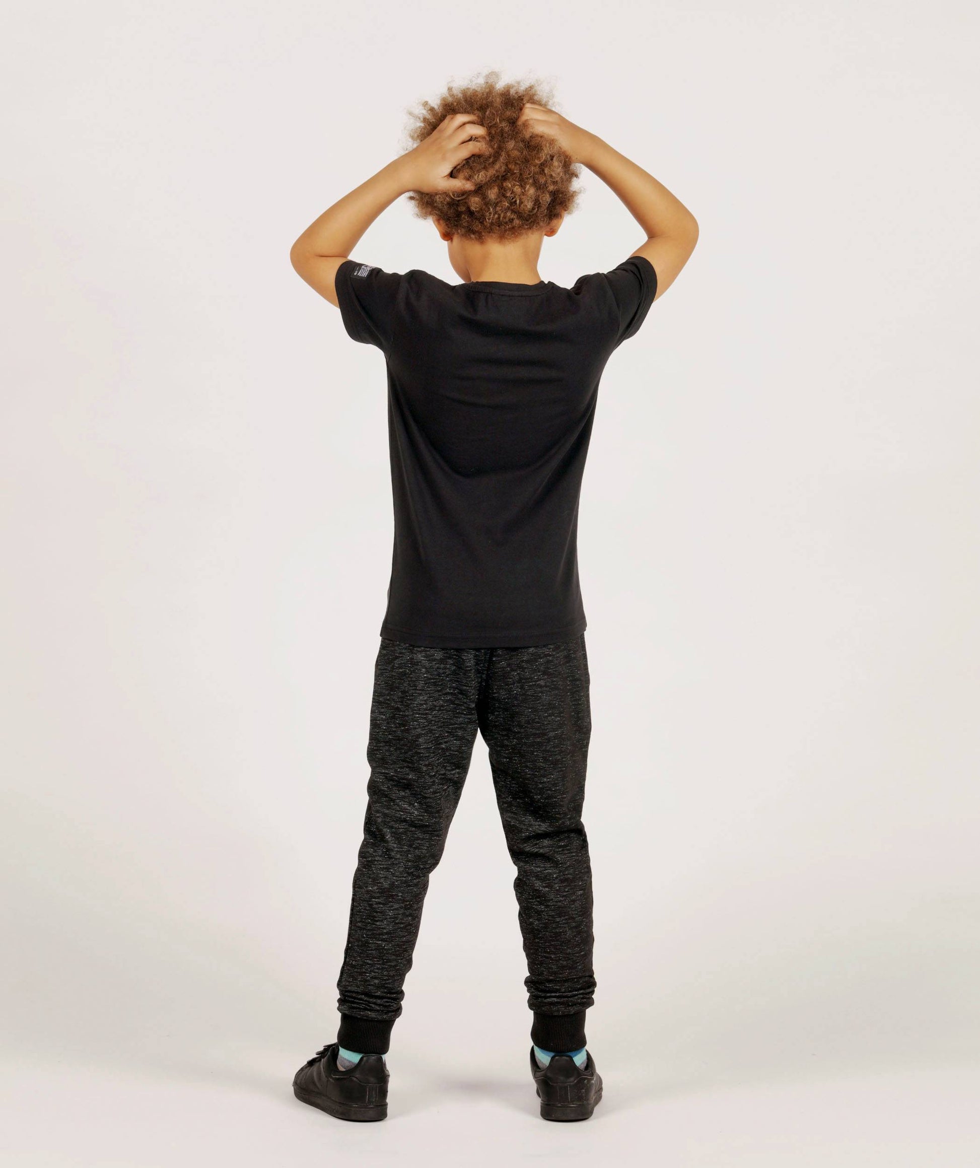 Le jogging en molleton chiné OBRIGADO emprunte au pantalon certains attributs : une fausse braguette et des poches latérales. Il garde néanmoins l’emblématique badge en gomme he sur la jambe et le cordon de serrage à la taille.
