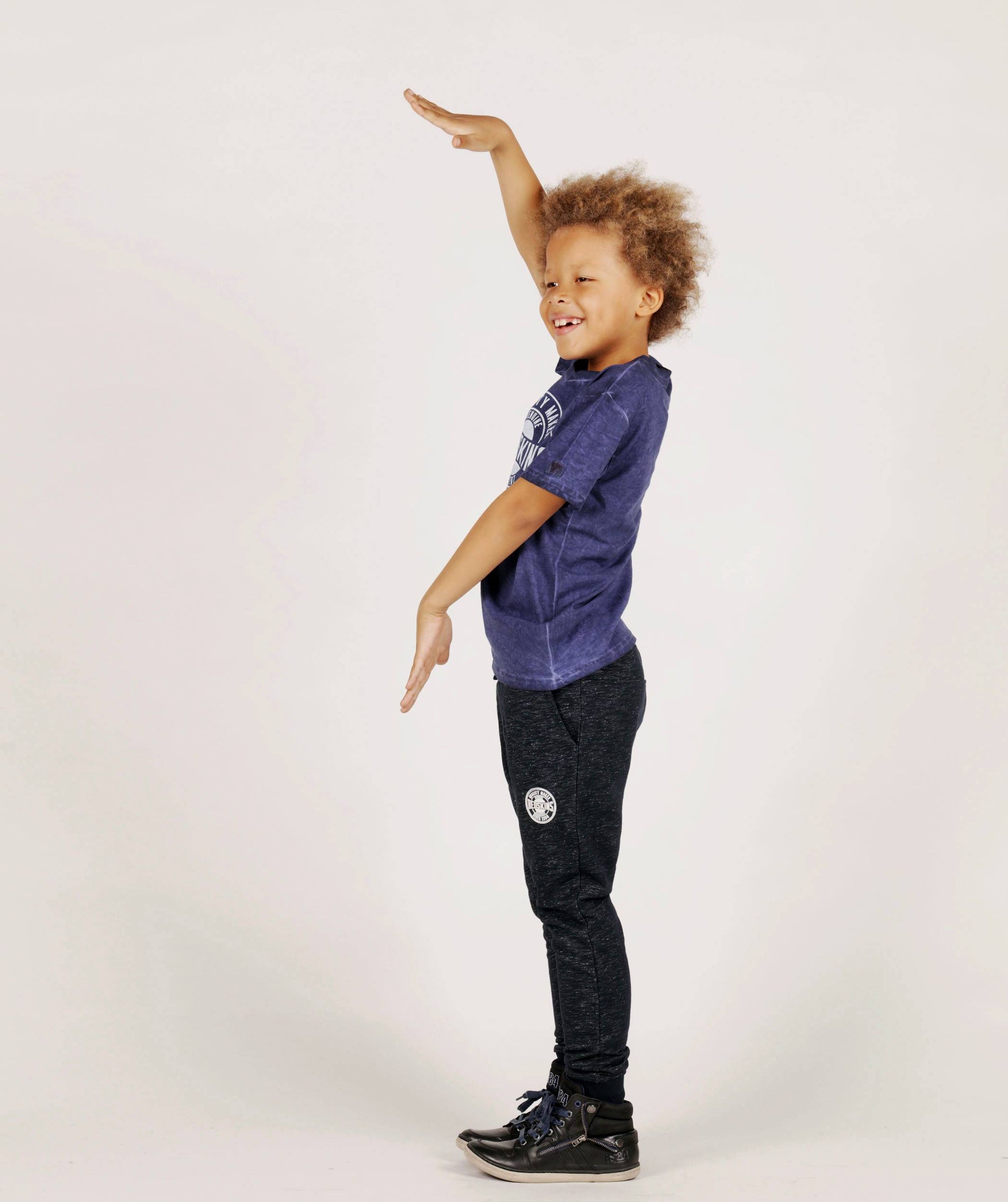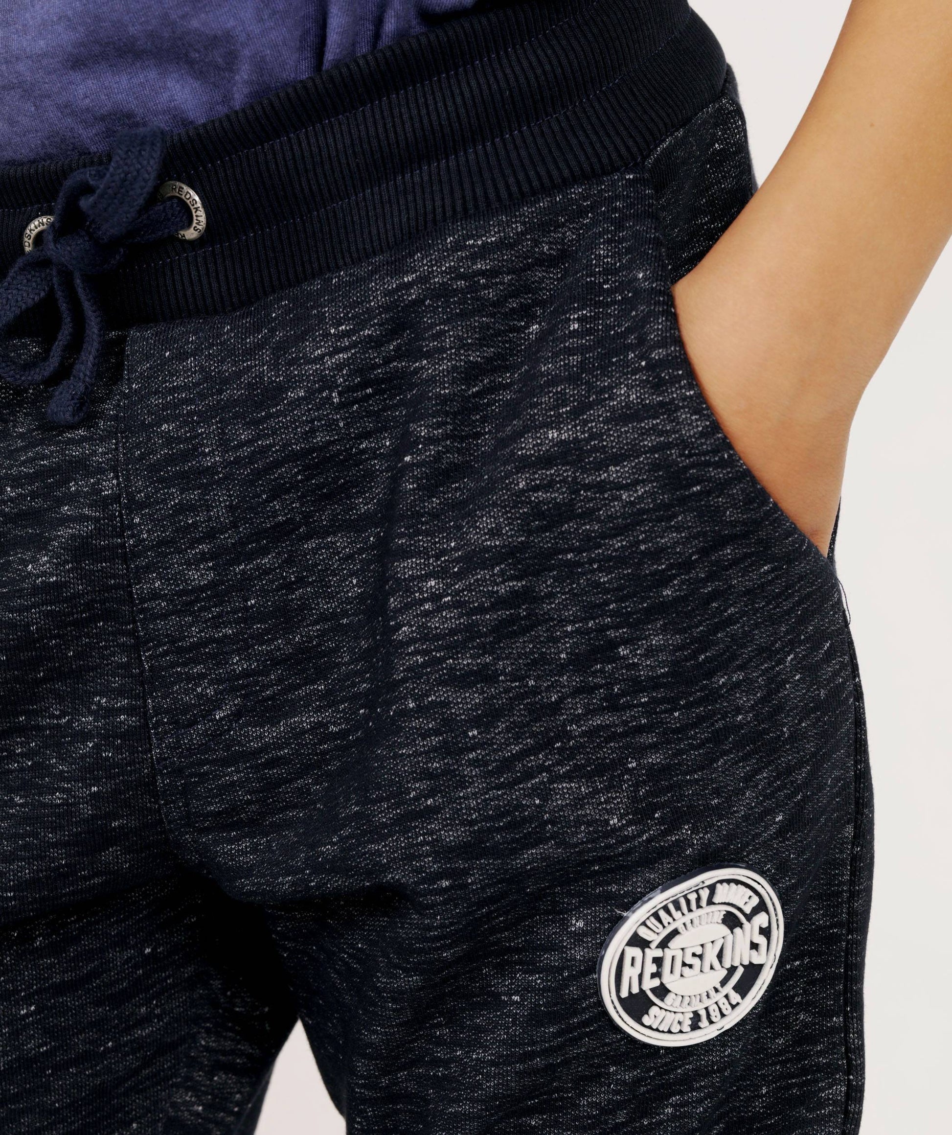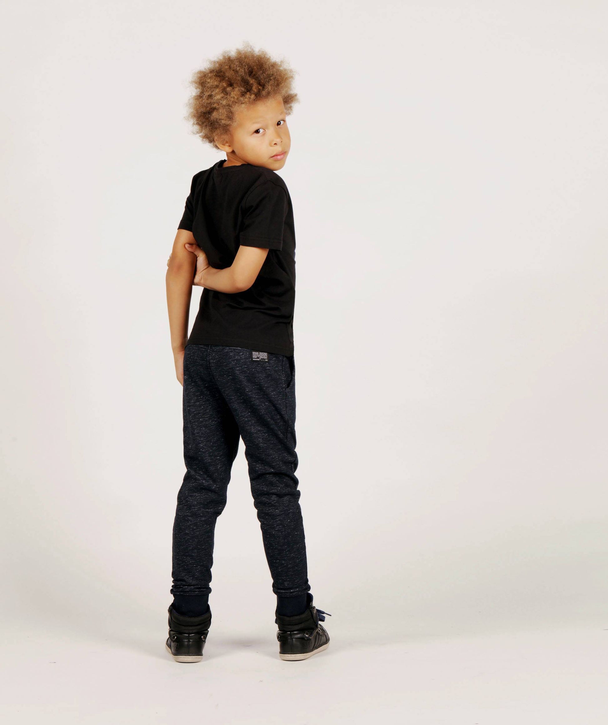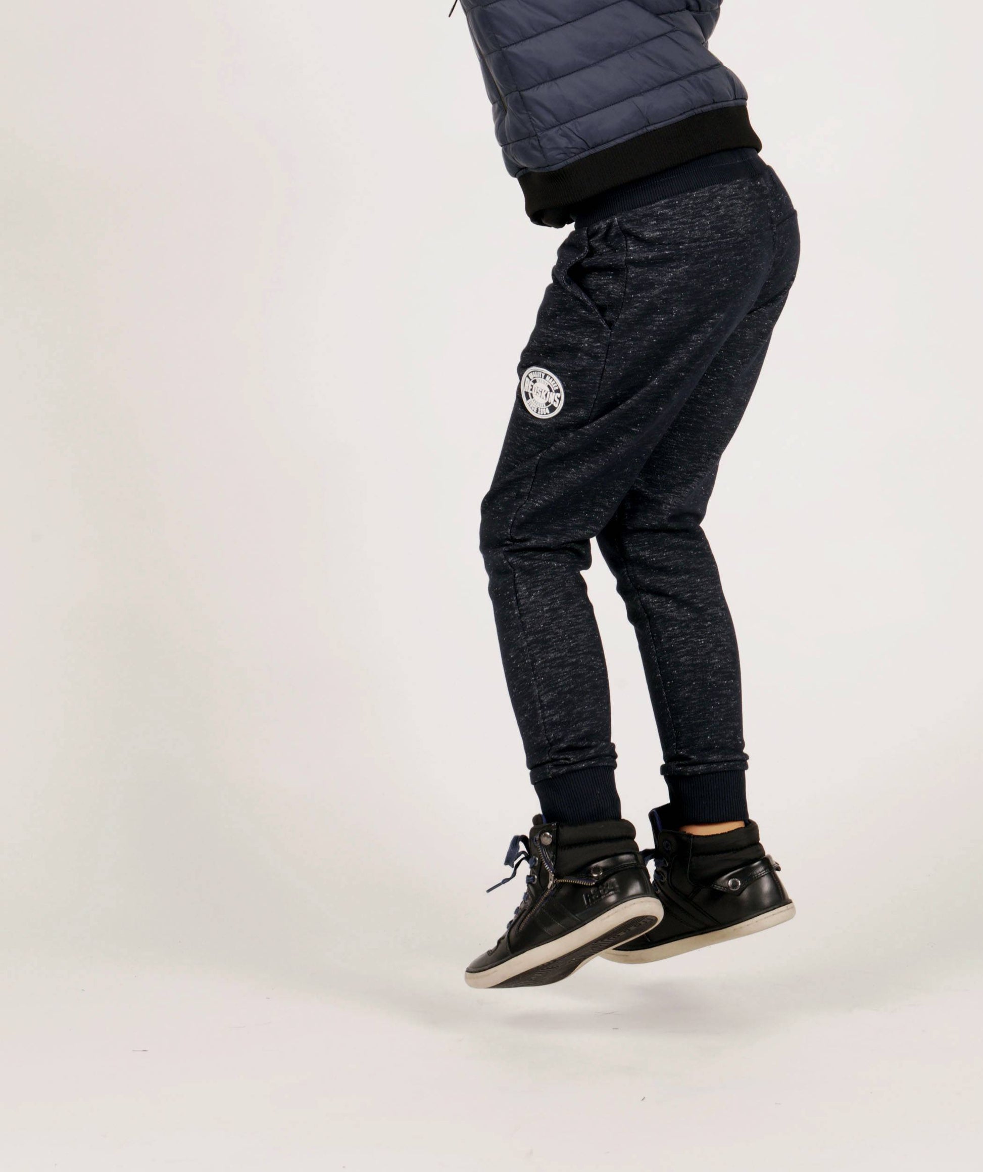 Le jogging en molleton chiné OBRIGADO emprunte au pantalon certains attributs : une fausse braguette et des poches latérales. Il garde néanmoins l’emblématique badge en gomme he sur la jambe et le cordon de serrage à la taille.