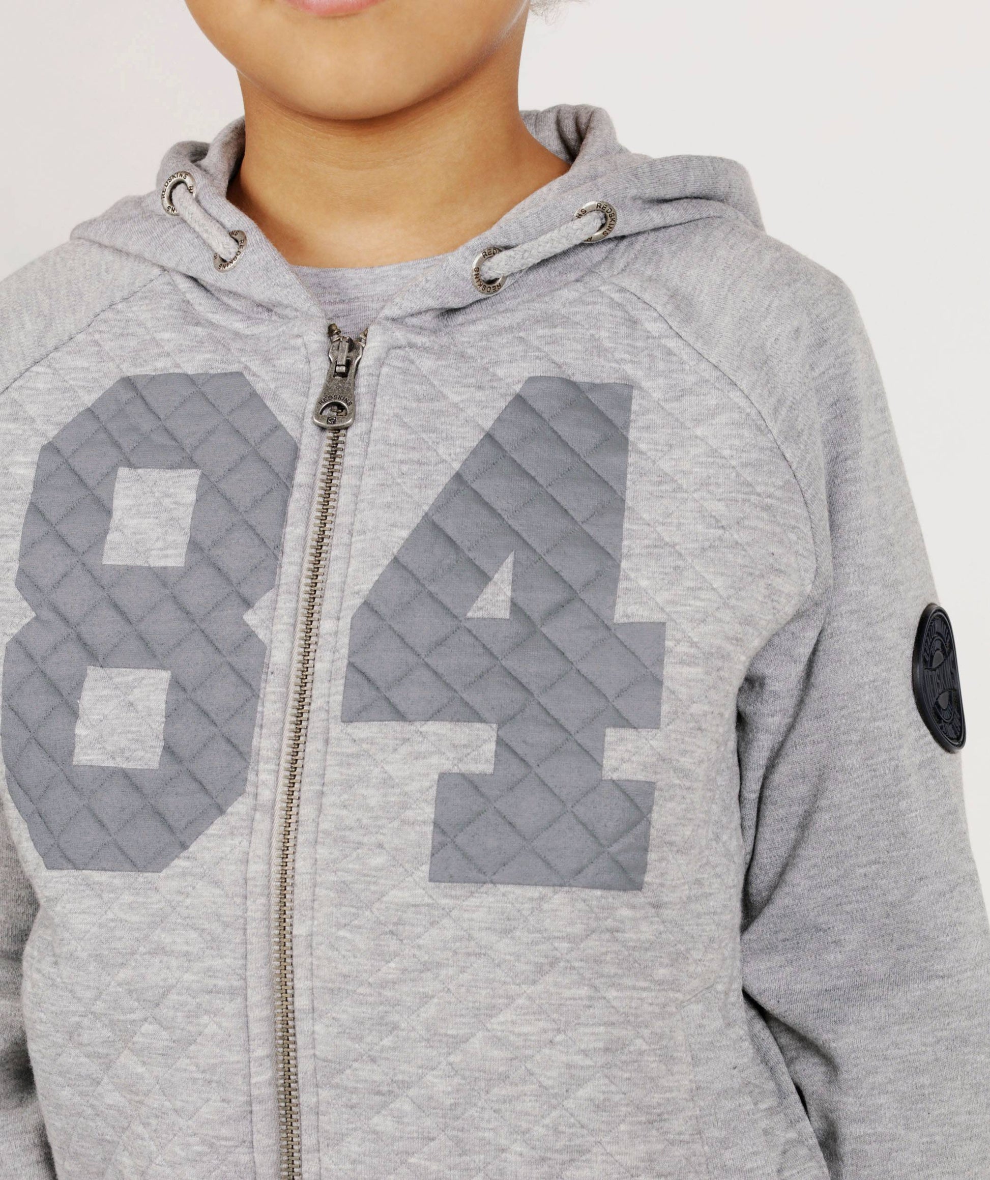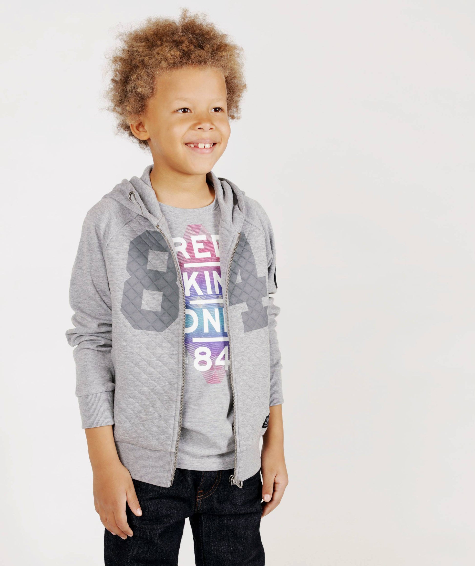 Création originale REDSKINS, le sweatshirt en molleton SUMATRA est travaillé dans les détails : une capuche doublée et surpiquée avec un cordon de serrage, une fermeture à zip en métal, un badge en gomme e sur la manche et un effet matelassé sur le devant orné d’une sérigraphie. Du bord-côte vient terminer les poignets et la ceinture de ce vêtement confortable au style inattendu.