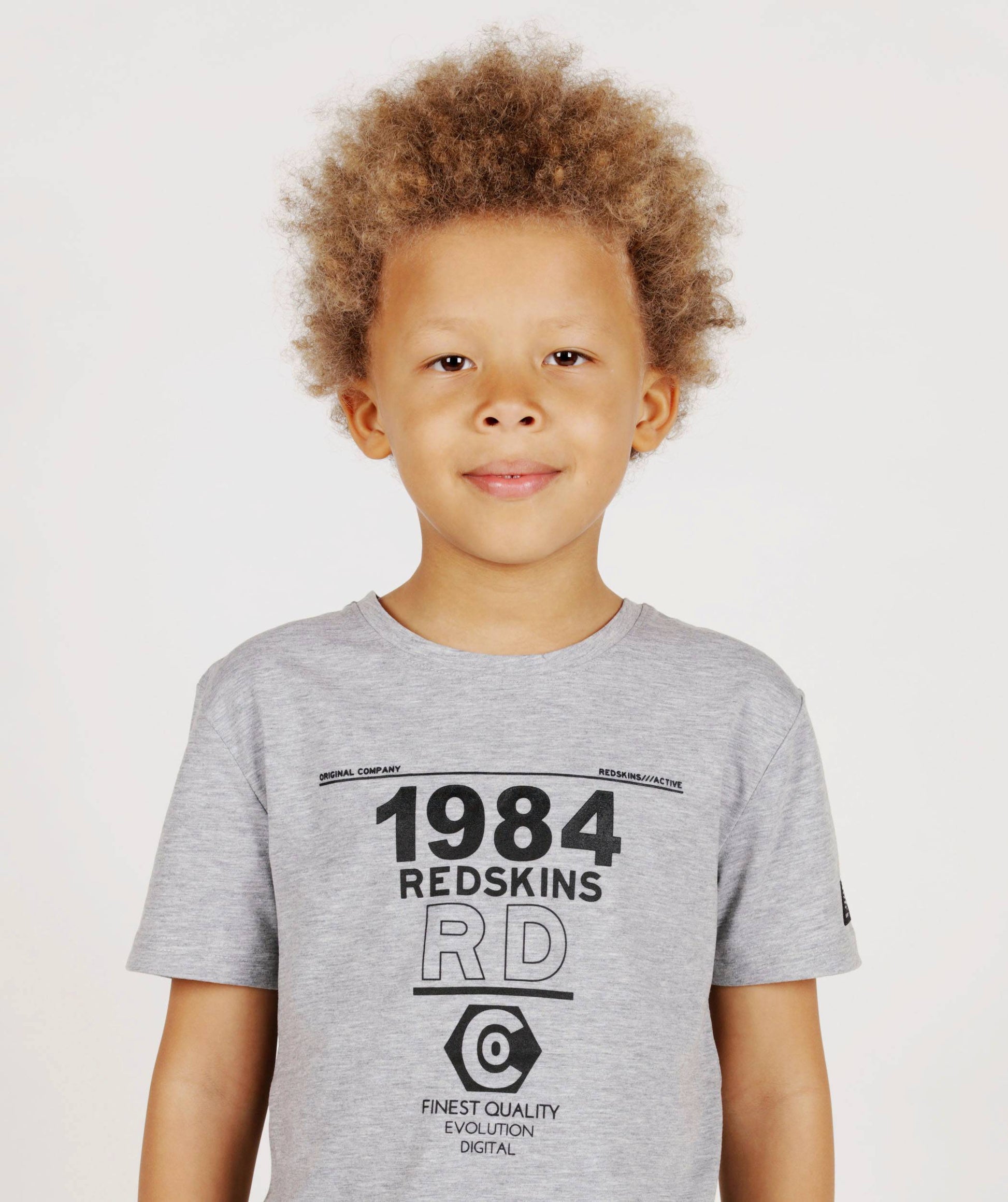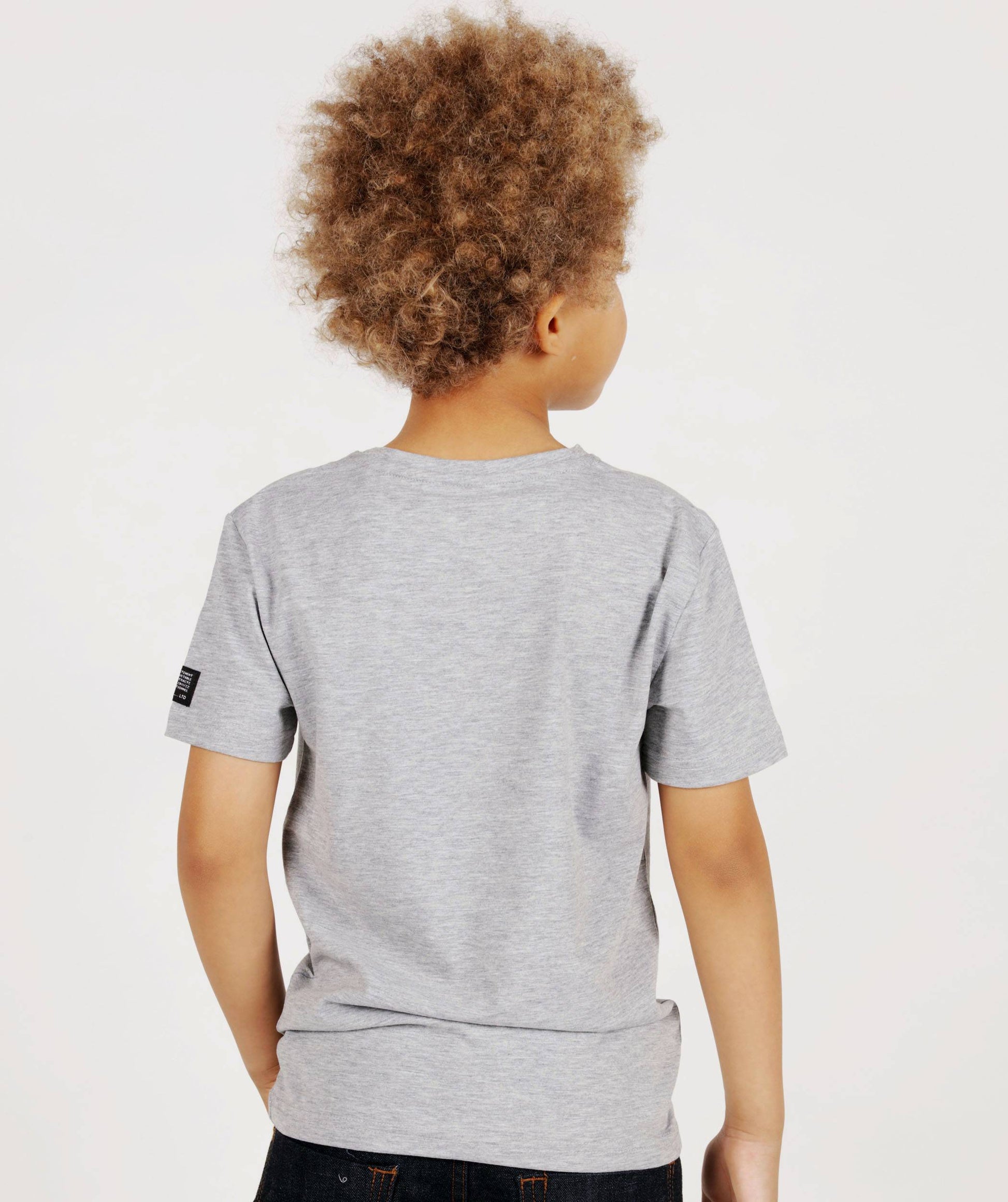 En coton mélangé , le t-shirt à manches courtes T-REX fait tout comme les grands : coupe près du corps, col rond surpiqué, étiquette tissée cousue sur la manche et une sérigraphie he sur le devant.