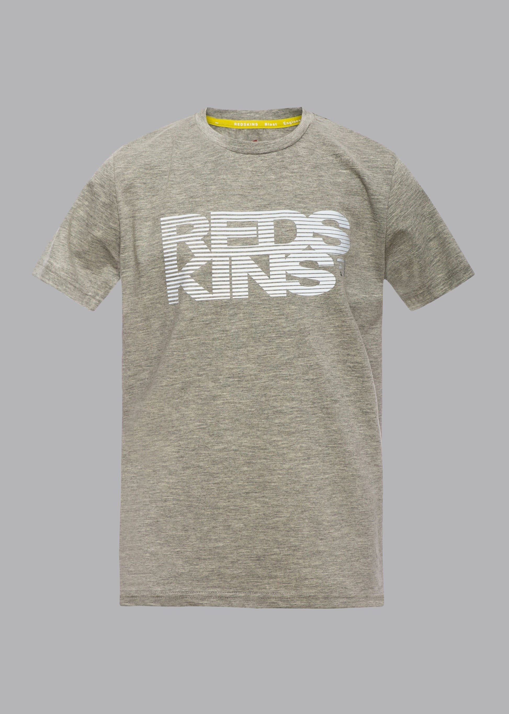 Le t-shirt PALMETTO à manches courtes et col rond arbore un imprimé appliqué graphique blanc. Composition : 95% Coton - 5% Elasthane