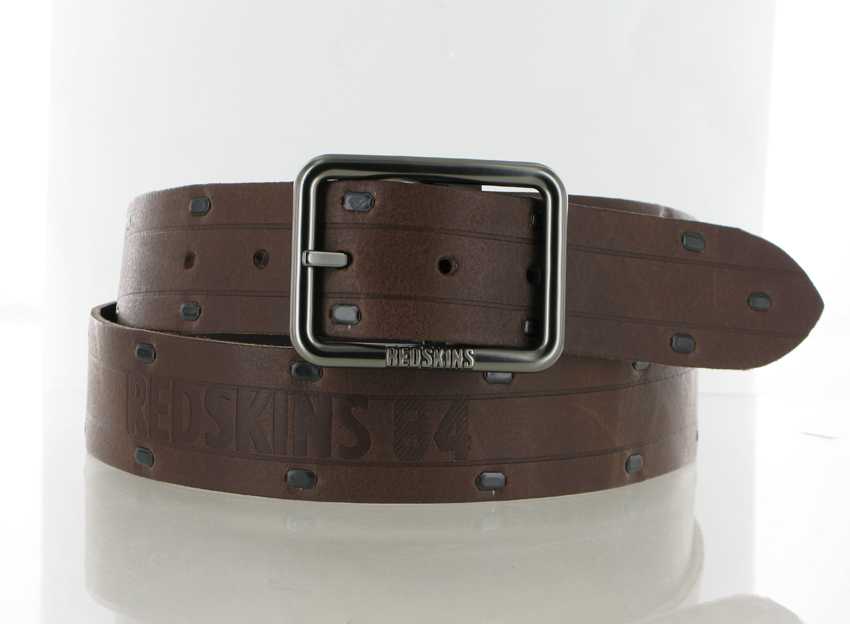 Ceinture 40 mm réglable, impression « Redskins 84 » à chaud au dos, Agrafes métal tout le long de la ceinture, Boucle ardillon à pince gravée Redskins en relief, Zamack aspect canon de fusil mat.
