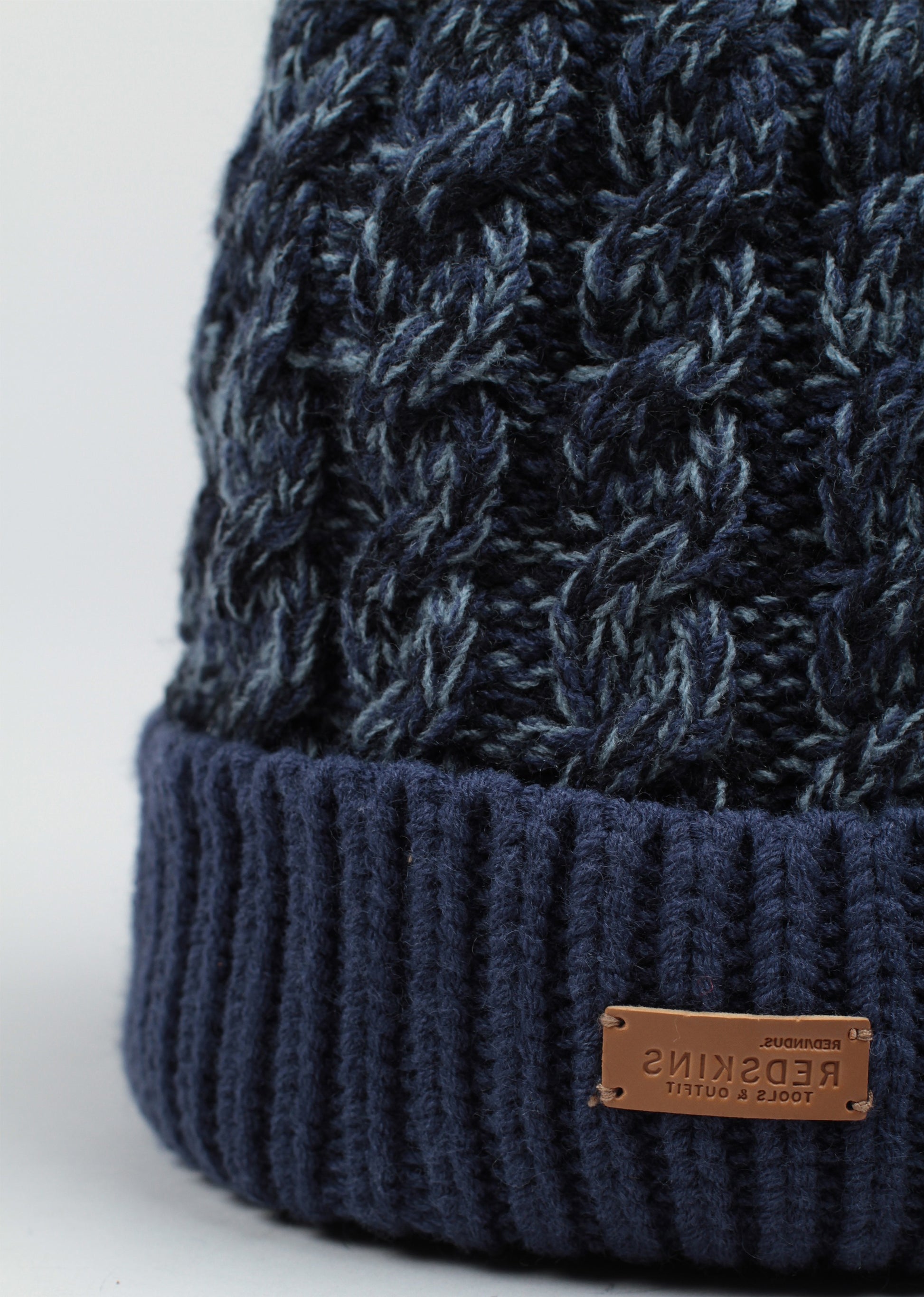 Bonnet bicolore à torsades, retour coloris uni, pompom, petite etiquette Redskins