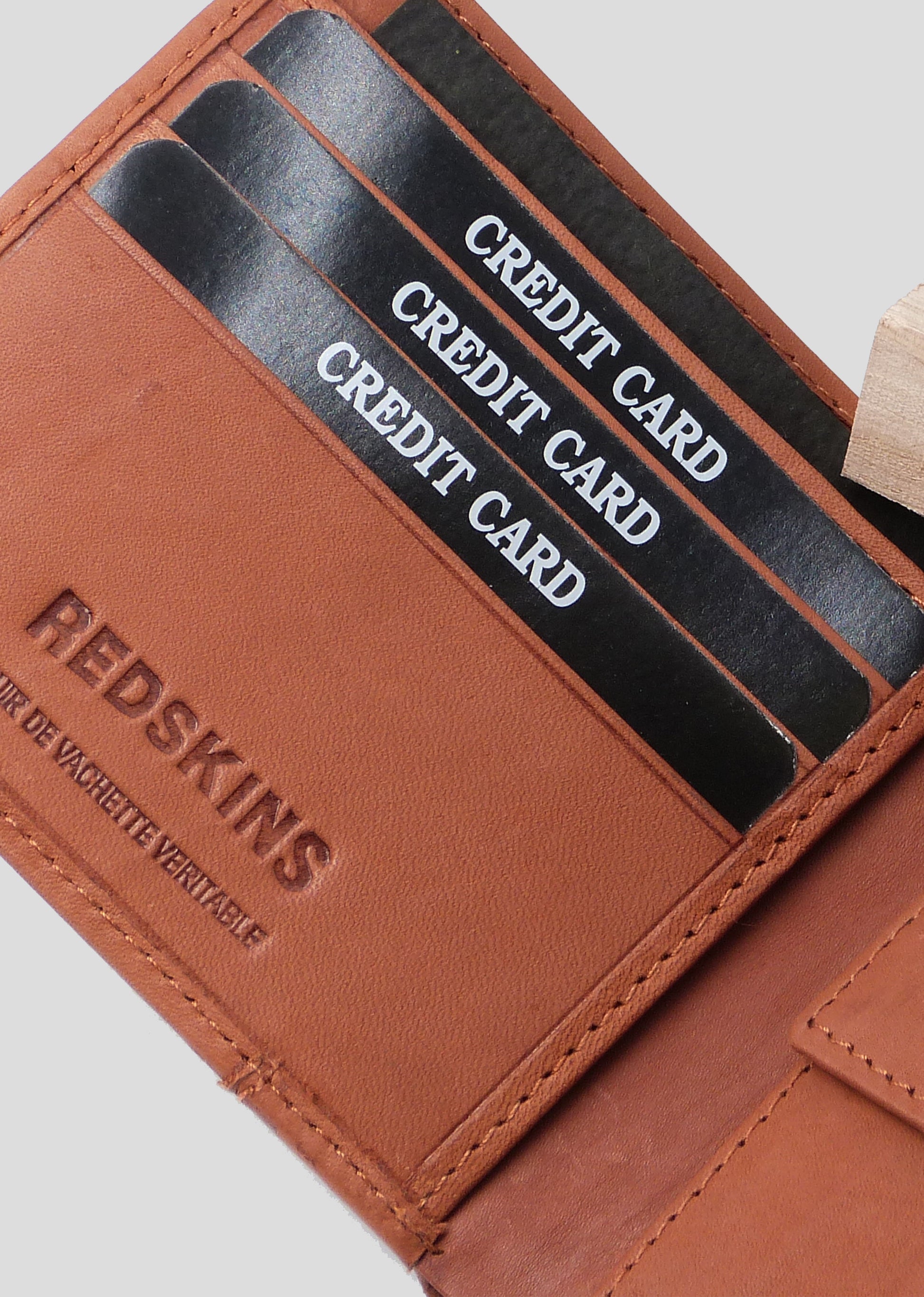 Le portefeuille JANIS est composé exclusivement de cuir de vachette, le logo de la marque est représenté plusieurs fois sur la partie frontale du portefeuille et une fois à l’intérieur.