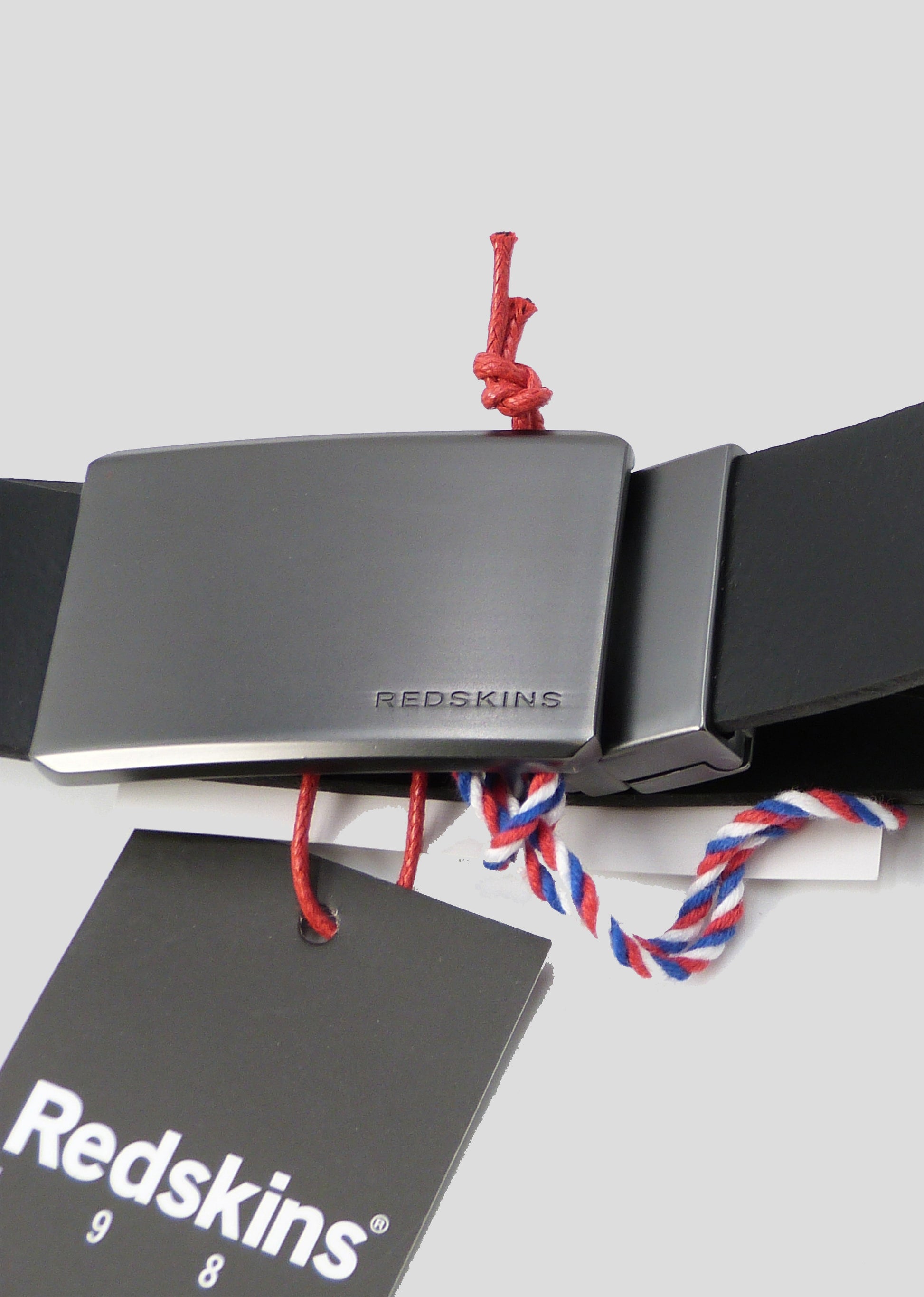 La ceinture KORUM faite à 100 % en croûte de vachette, expose sur sa boucle, un logo REDSKINS, un autre logo se trouve aussi à l’intérieur.