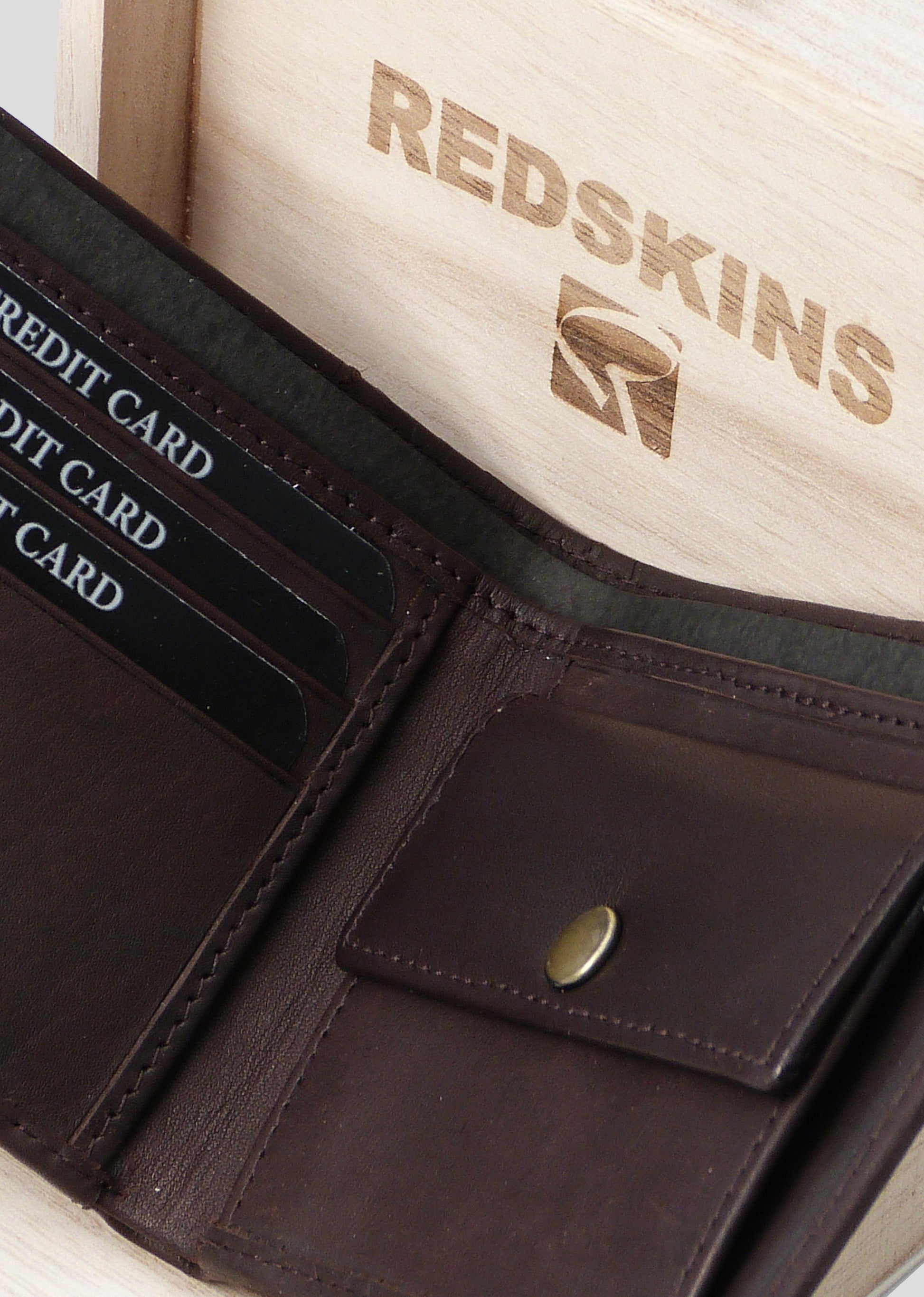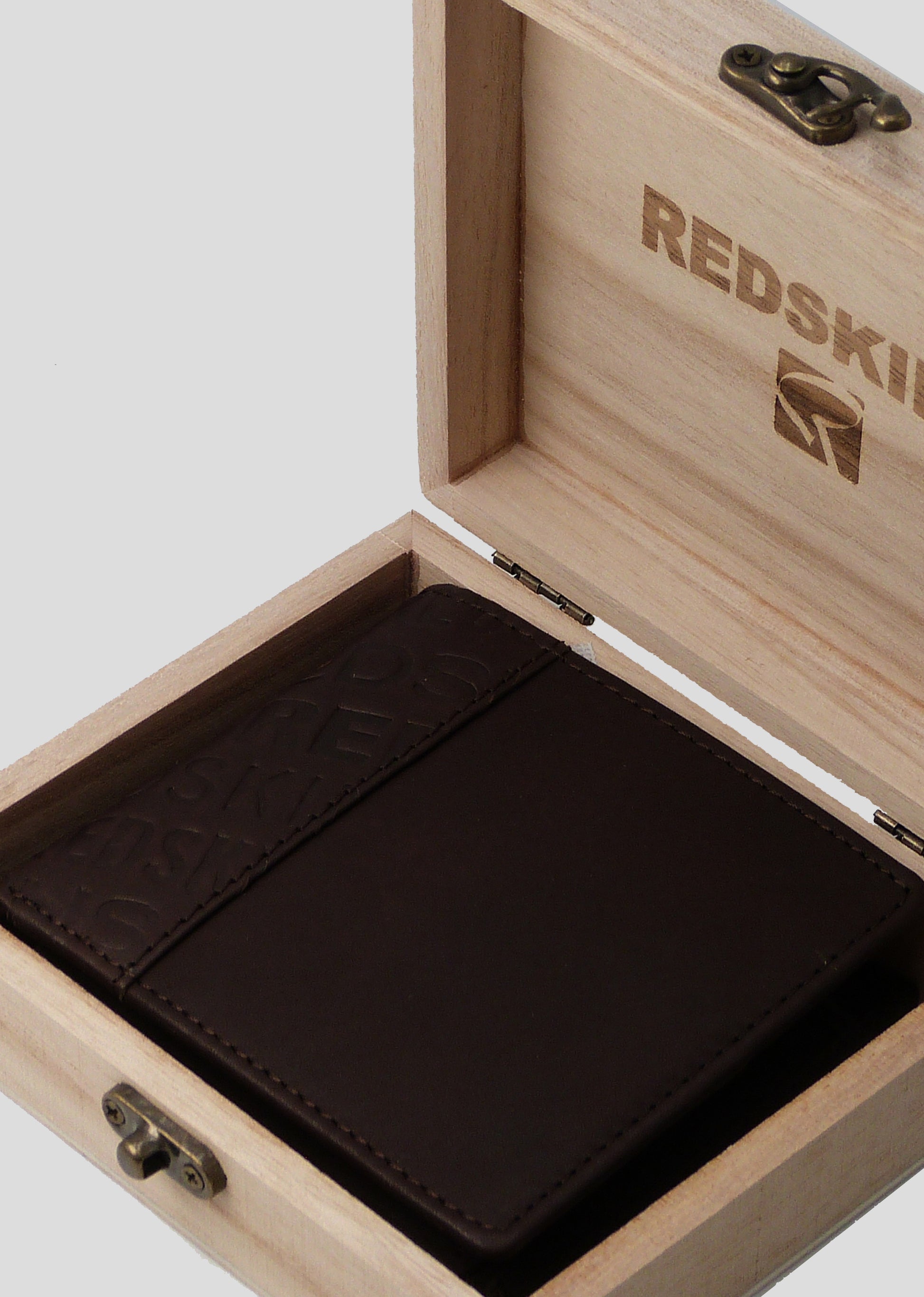 Le portefeuille JANIS est composé exclusivement de cuir de vachette, le logo de la marque est représenté plusieurs fois sur la partie frontale du portefeuille et une fois à l’intérieur.