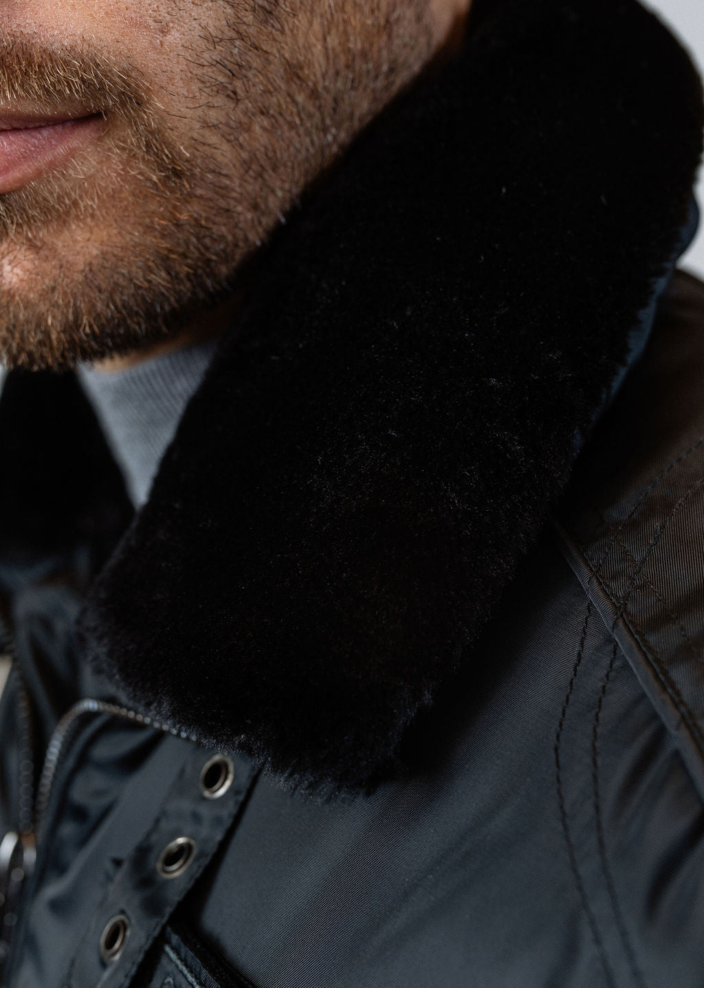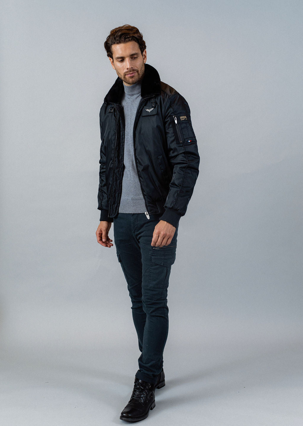 Le blouson aviateur collector HURRICAN FIGHTER prend de l'altitude et touche les étoiles. En nylon marine et au col en fourrure, ses écussons apparaissent comme signes de son parcours sans faute dans le vestiaire de la patrouille de France.