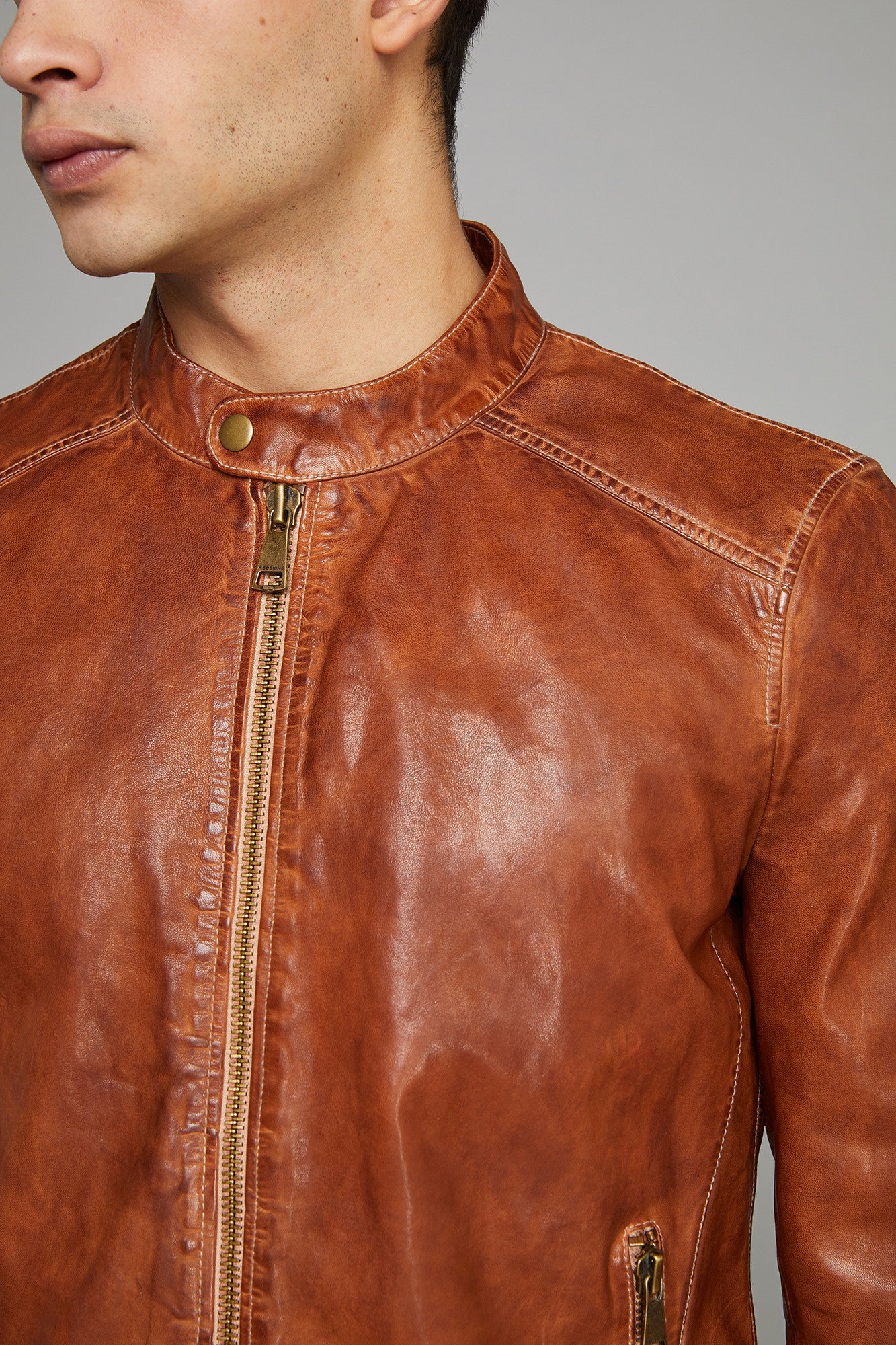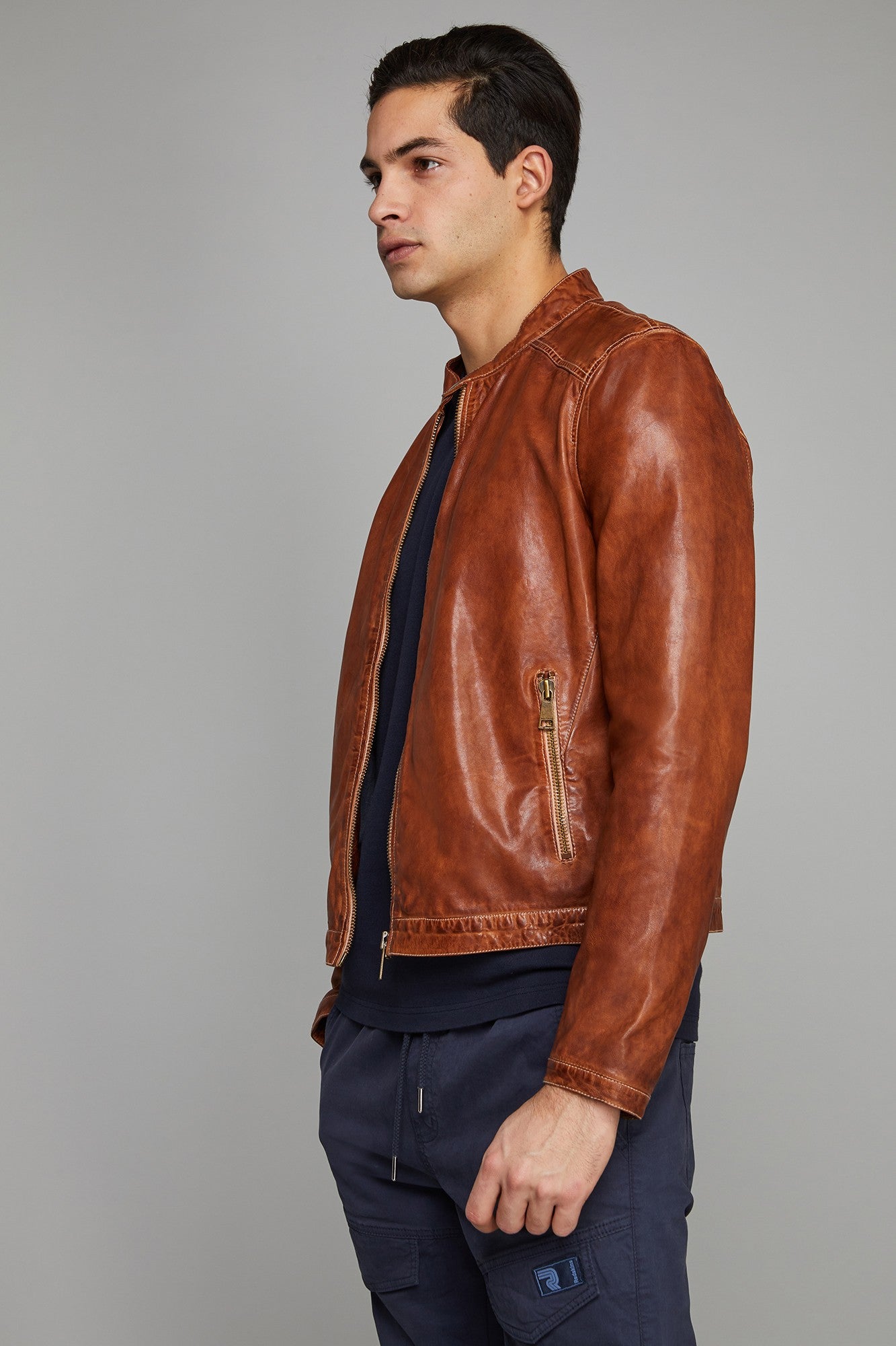 Le blouson MCQUEEN RETRO en cuir reprend le style motard de manière épurée grâce à son col pressionné. Il possède une fermeture éclair, 2 poches zippées latérales ainsi que des manches zippées pour plus d'aisance. Il dispose d'une doublure en coton. Composition : Cuir de mouton