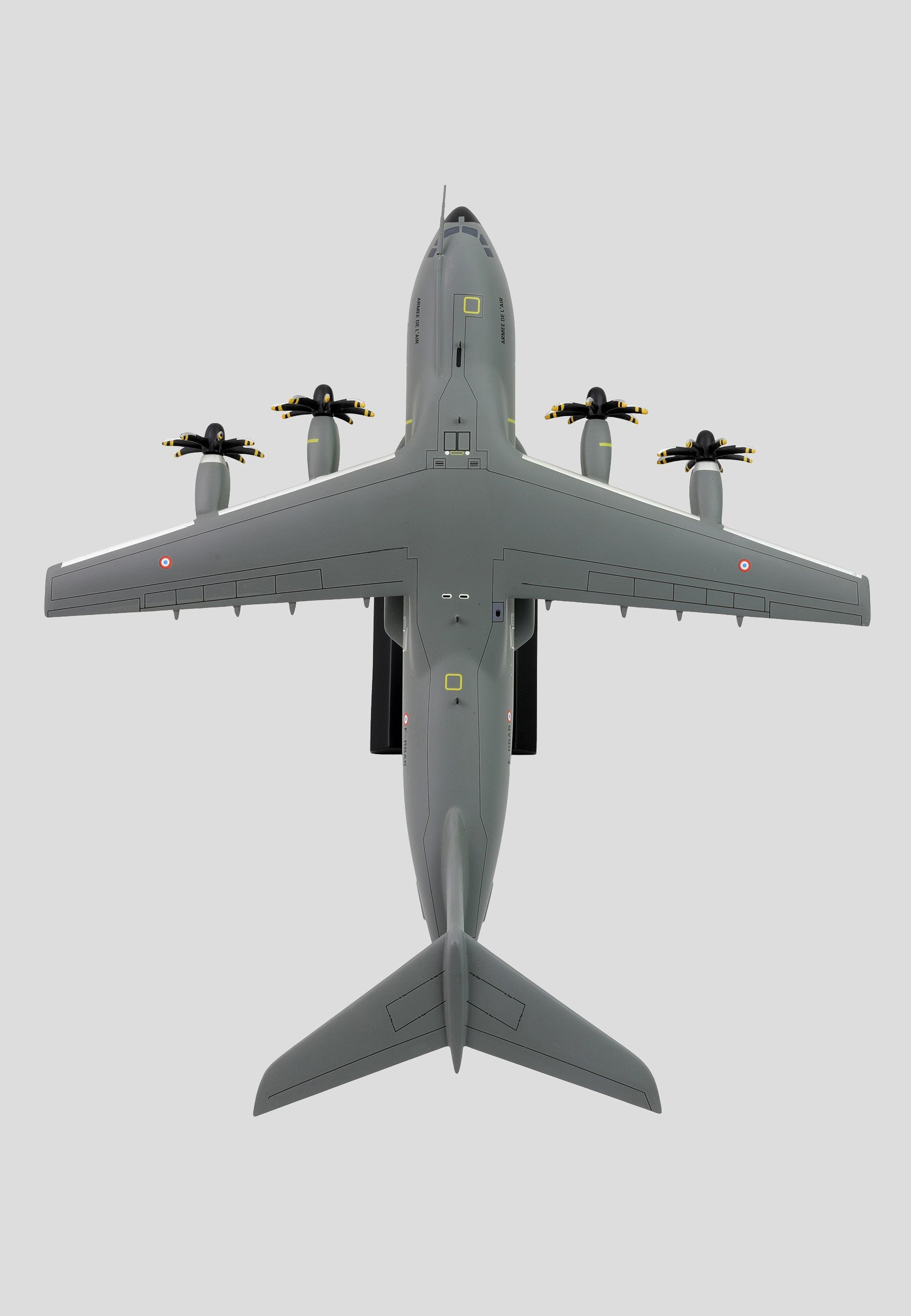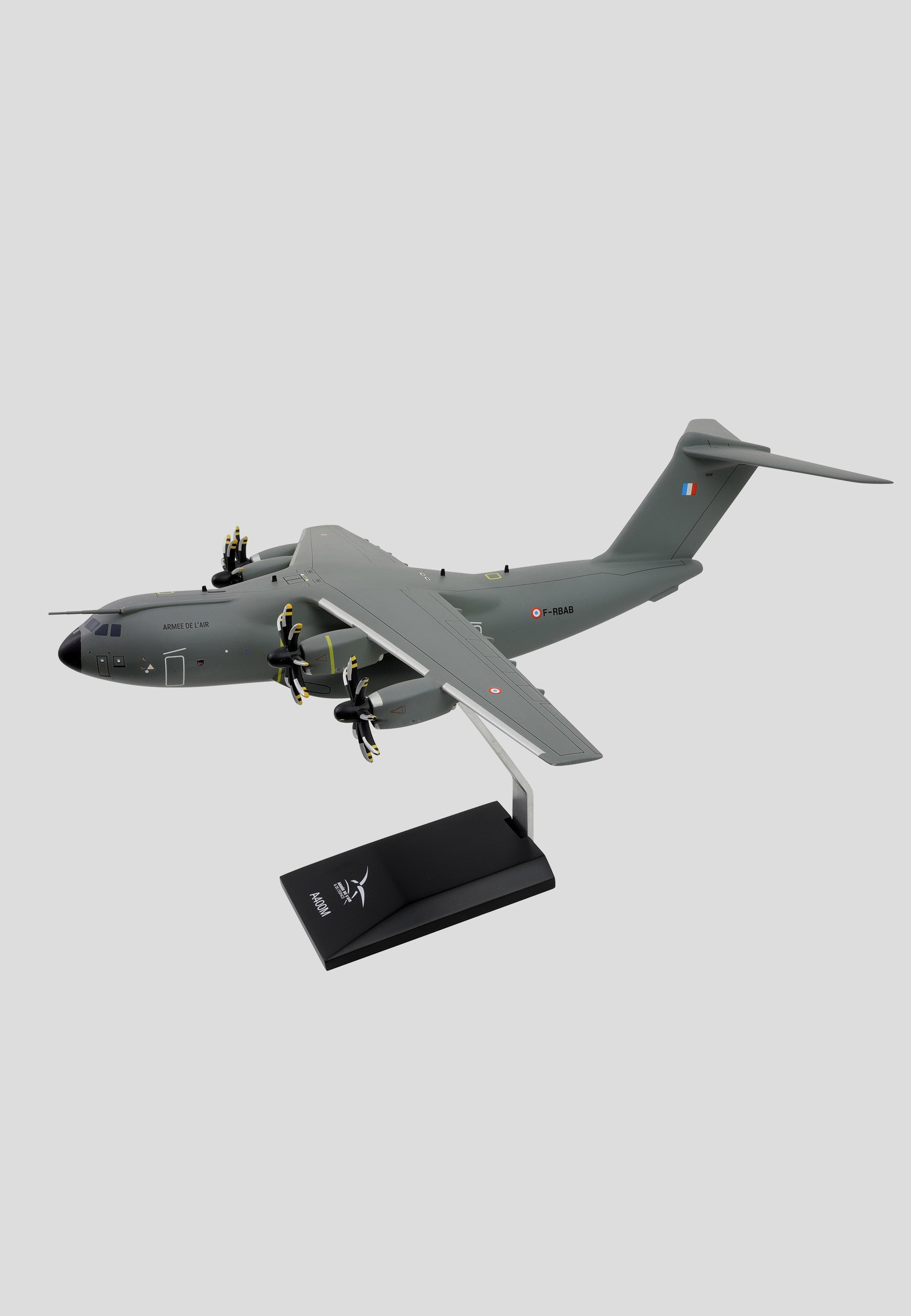 Cette maquette de l'avion de transport militaire A400M de l'Armée de l'air est fabriquée en résine de haute qualité à l'échelle 1/100ème. Elle repose sur un élégant socle combinant aluminium et bois, offrant une présentation raffinée et détaillée du célèbre appareil. Conçue avec soin, cette maquette capture fidèlement les lignes et la puissance de l'A400M, symbole de l'excellence aéronautique européenne. Longueur 45 cm, envergure 42 cm, hauteur avec socle 30 cm