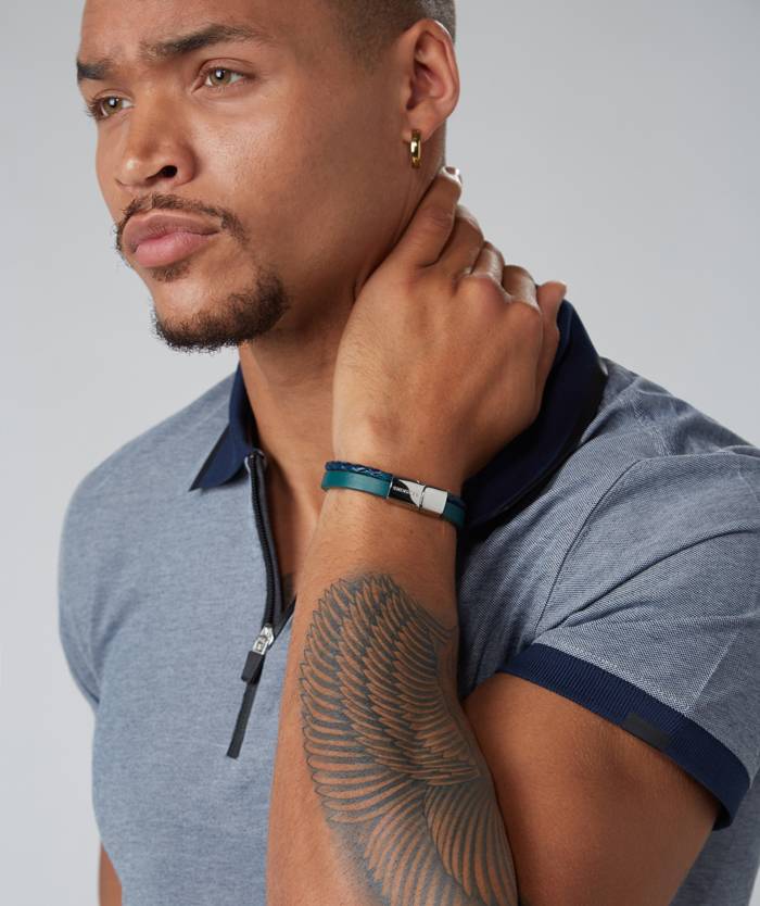 Bracelet double rang tressé et plat. Tour de poignet 19 cm.