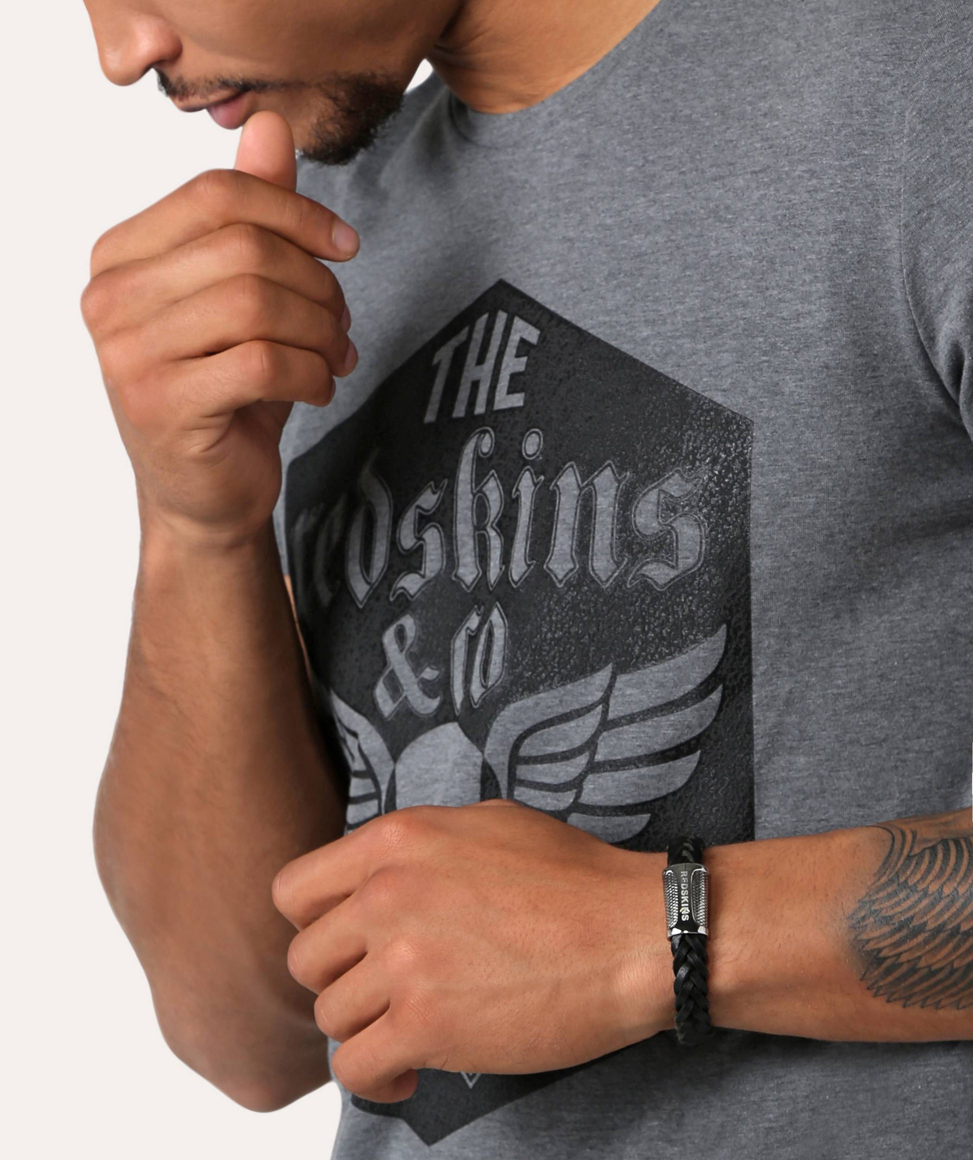 Bracelet en cuir tressé & fermeture acier. Tour de poignet 19 cm.