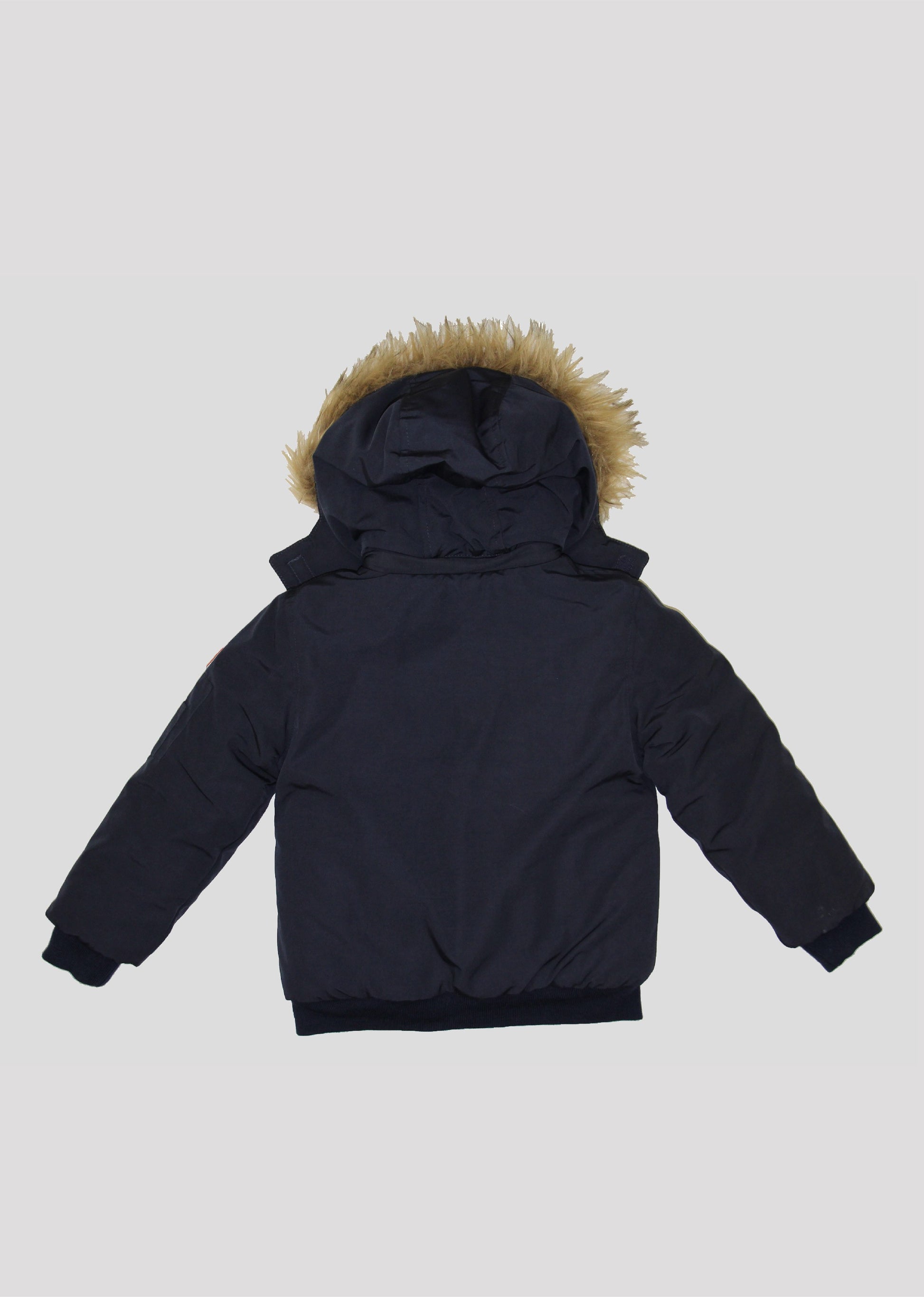 Parka courte à capuche ornée de fausses fourrure. Compostion : 100% Polyester