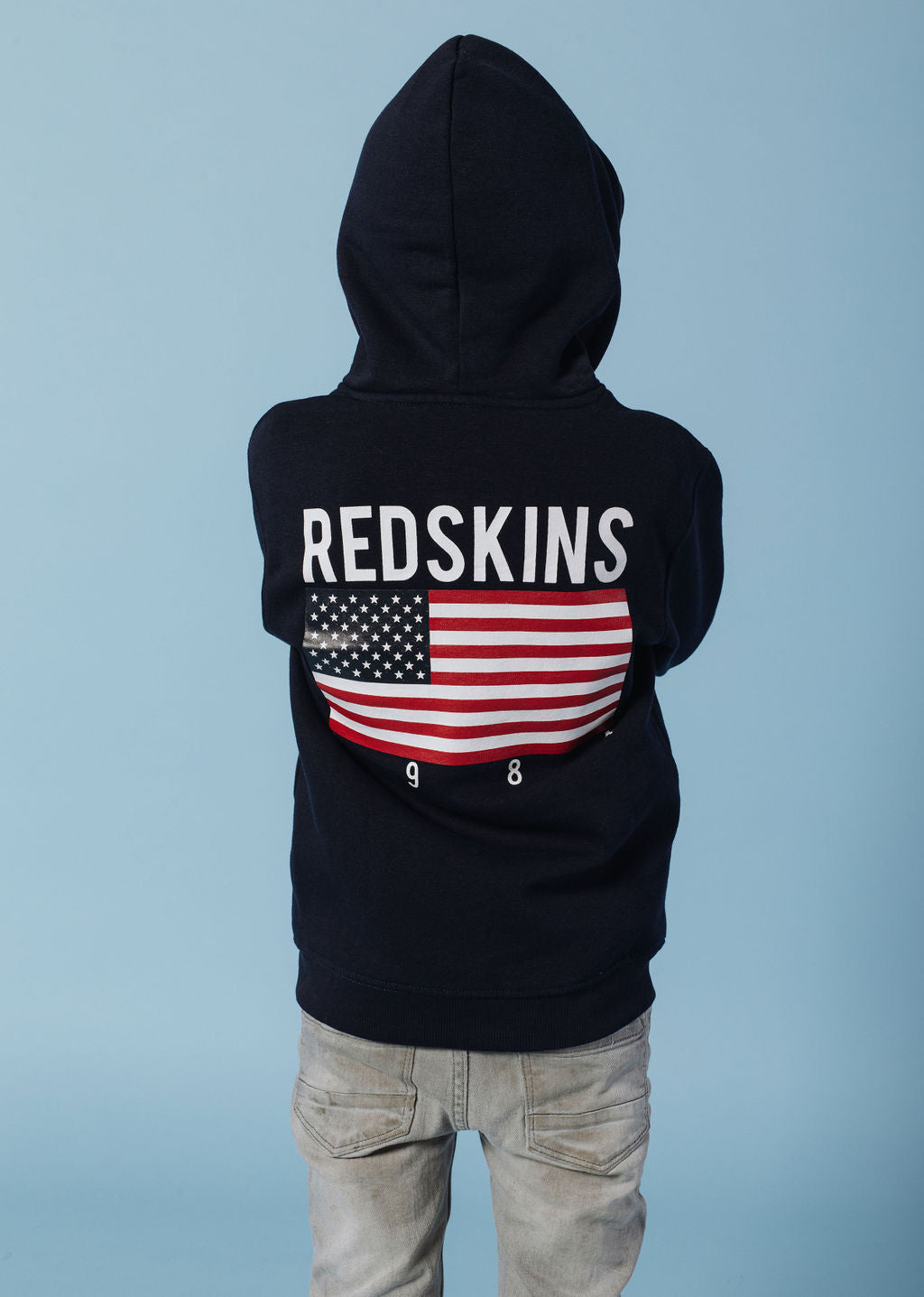 Le sweat zippé SWH2002 est une pièce incontournable et essentielle pour les journées les plus détendues. Confortable pour toutes les saisons, il est orné d'un zip, d'une capuche, de finitions bord-côtes et de deux poches devant. possède une inscription REDSKINS 1984 sur la face avant et d'un drapeau des États-Unis sur le dos.