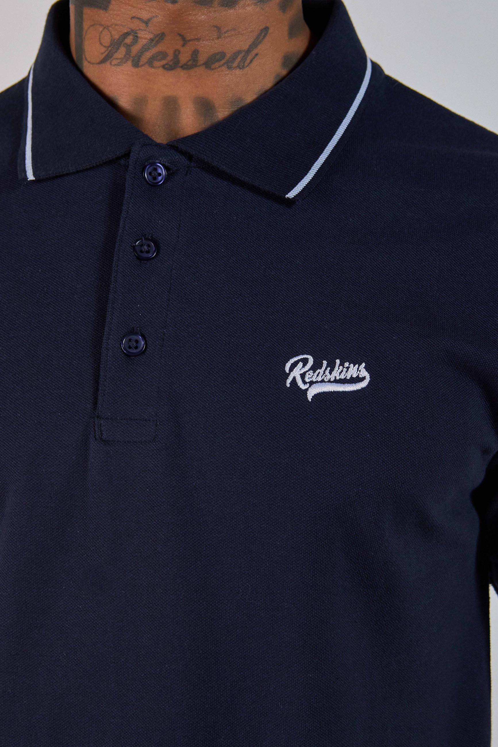 Découvrez le Polo à manches courtes 231040, col à revers, boutons d'attaches, logo Redskins côté cœur, serrage au niveau des manches, composition : 100% coton.