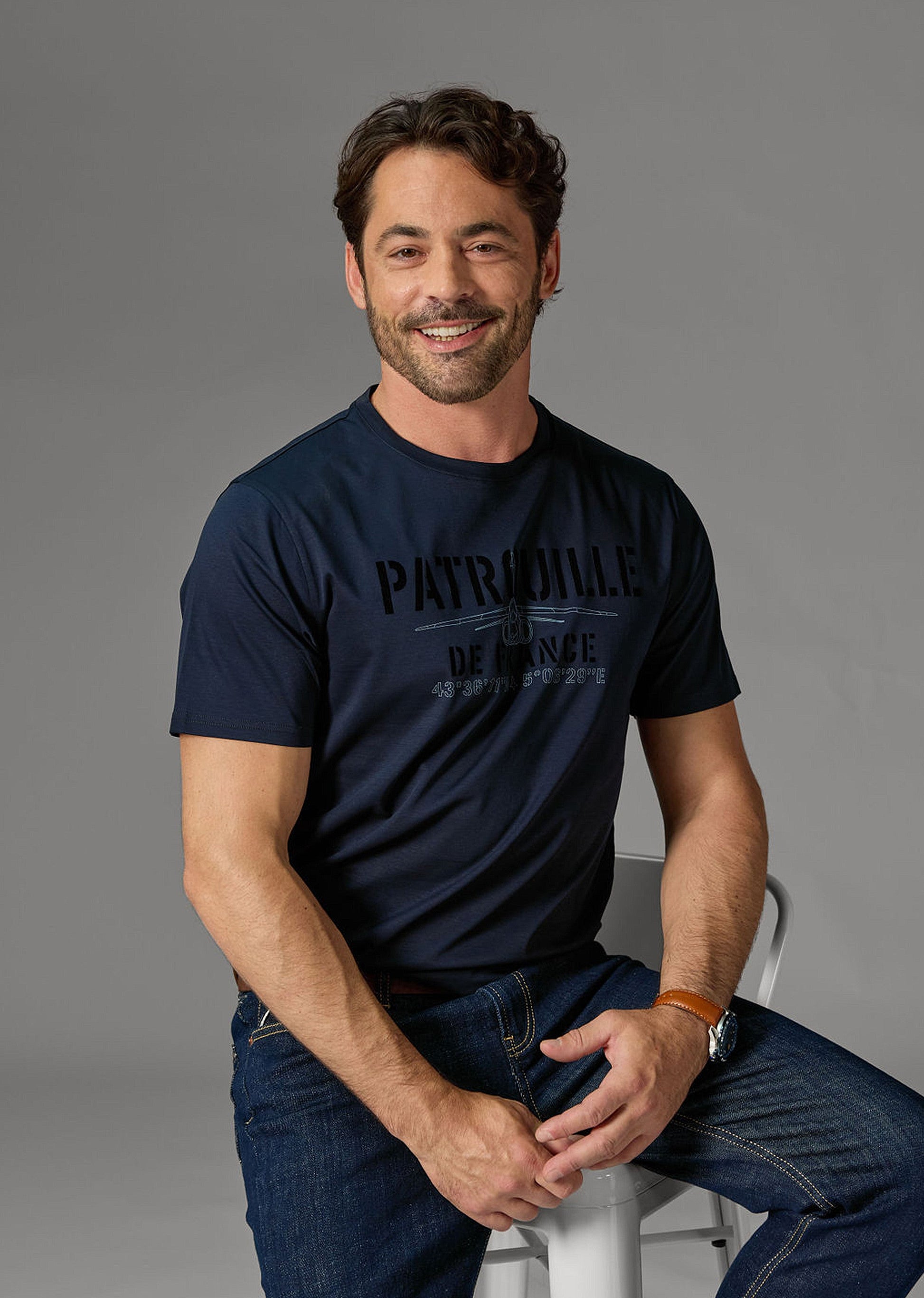 Découvrez notre t-shirt AERO MERCERISE de la gamme Patrouille de France, un produit premium qui allie style et qualité. Ce t-shirt en coton mercerisé est doté de manches courtes et d'un col rond. Il présente un flocage et une impression Patrouille de France, ajoutant une touche distinctive à votre tenue. La géolocalisation de la base de Salon-De-Provence apparait également. Parfait pour afficher votre passion pour l'aviation avec élégance et confort. 1 % coton mercerisé