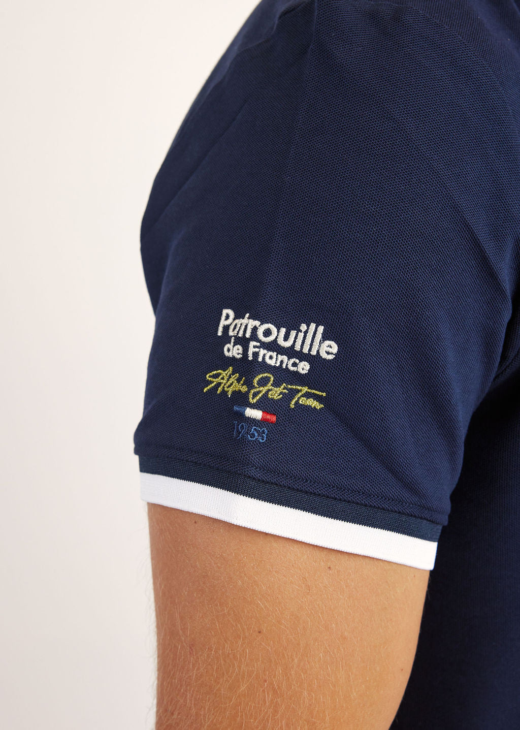 Le col du polo BANDY HIGH se ferme à l'aide d’une patte de boutonnage. Il arbore près du cœur un écusson et une inscription Patrouille de France sur la manche droite. 55% coton - 45% polyester