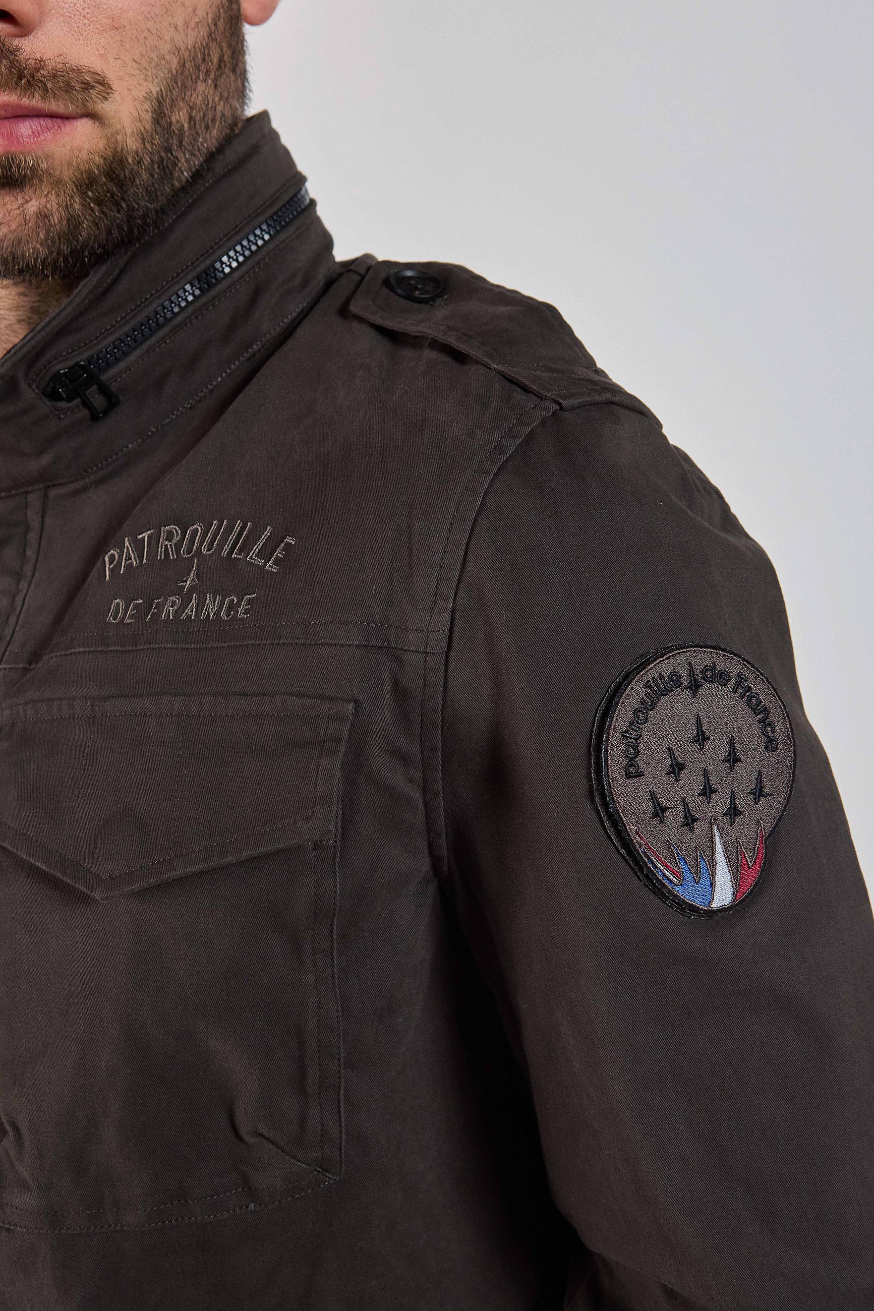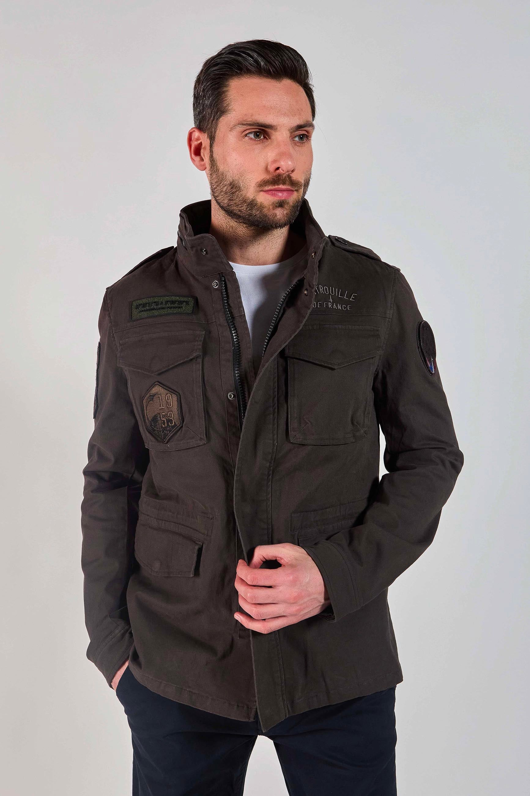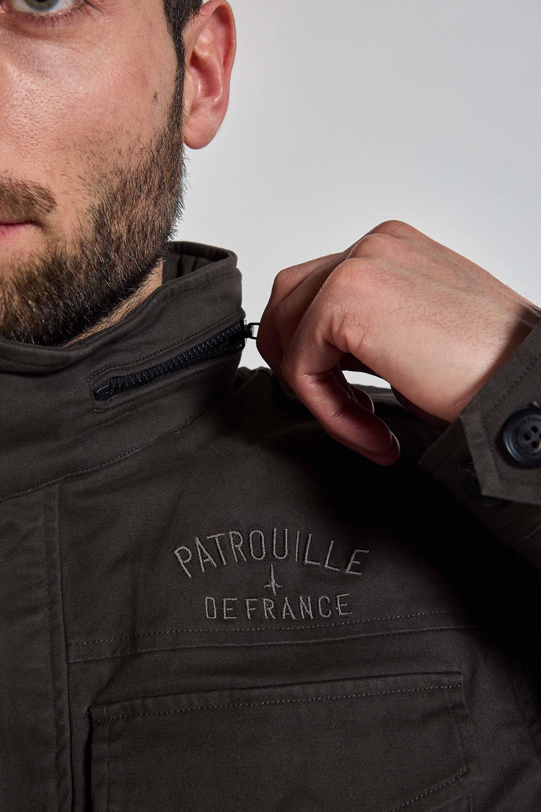 Pièce à manche BATTLE AERO en coton, col montant avec attache, 2 poches à rabats latérales au niveau du torse, 2 poches à rabats latérales basses, 2 cordons d'attaches en bas de la pièce, 2 logos brodés PATROUILLE DE FRANCE au niveau de chaque épaules, 1 scratch au dessous de la poche à rabat droite au niveau du torse, 1 patte à épaule avec un bouton d'attache sur chaque épaules, composition : 98% COTON - 2% ELASTHANNE. Collection Patrouille De France by Redskins.