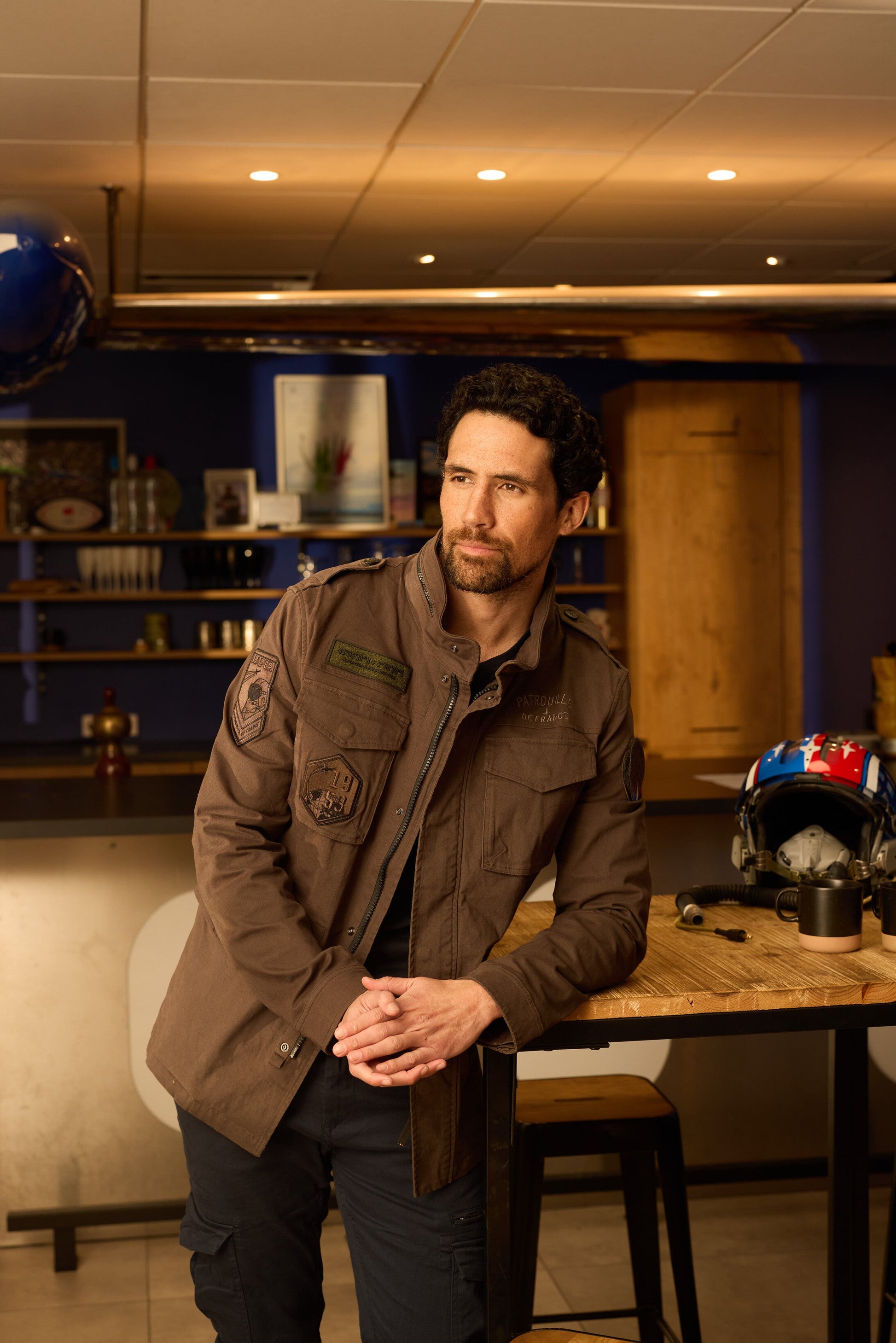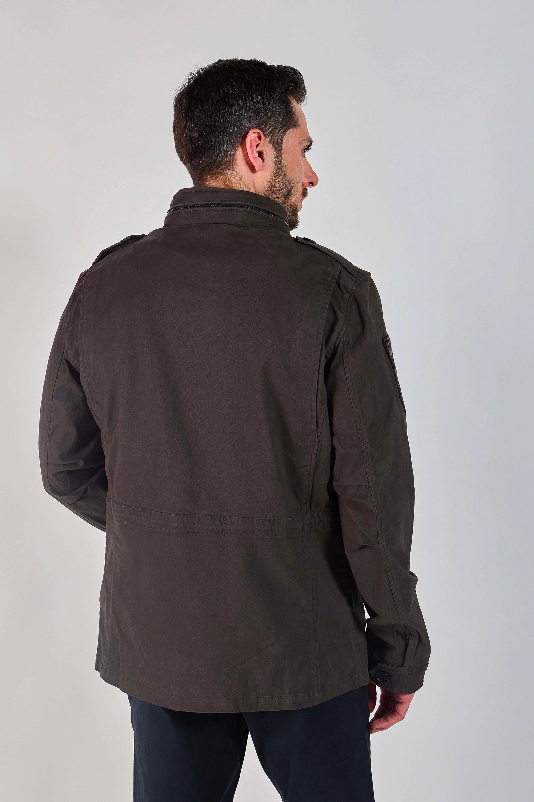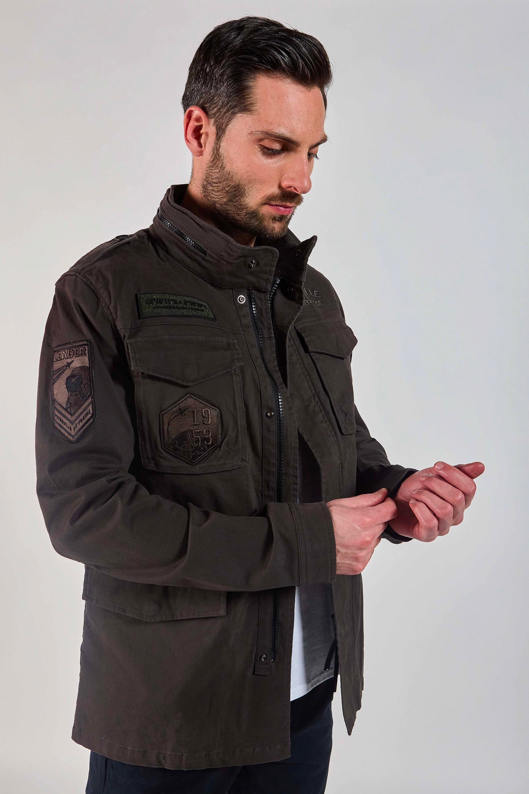Pièce à manche BATTLE AERO en coton, col montant avec attache, 2 poches à rabats latérales au niveau du torse, 2 poches à rabats latérales basses, 2 cordons d'attaches en bas de la pièce, 2 logos brodés PATROUILLE DE FRANCE au niveau de chaque épaules, 1 scratch au dessous de la poche à rabat droite au niveau du torse, 1 patte à épaule avec un bouton d'attache sur chaque épaules, composition : 98% COTON - 2% ELASTHANNE. Collection Patrouille De France by Redskins.