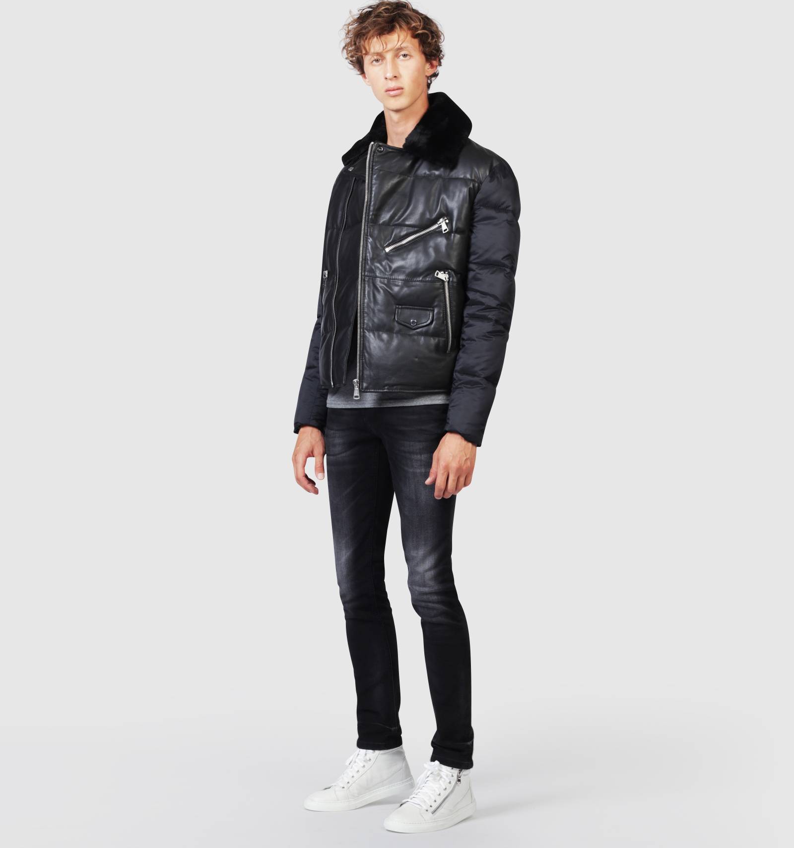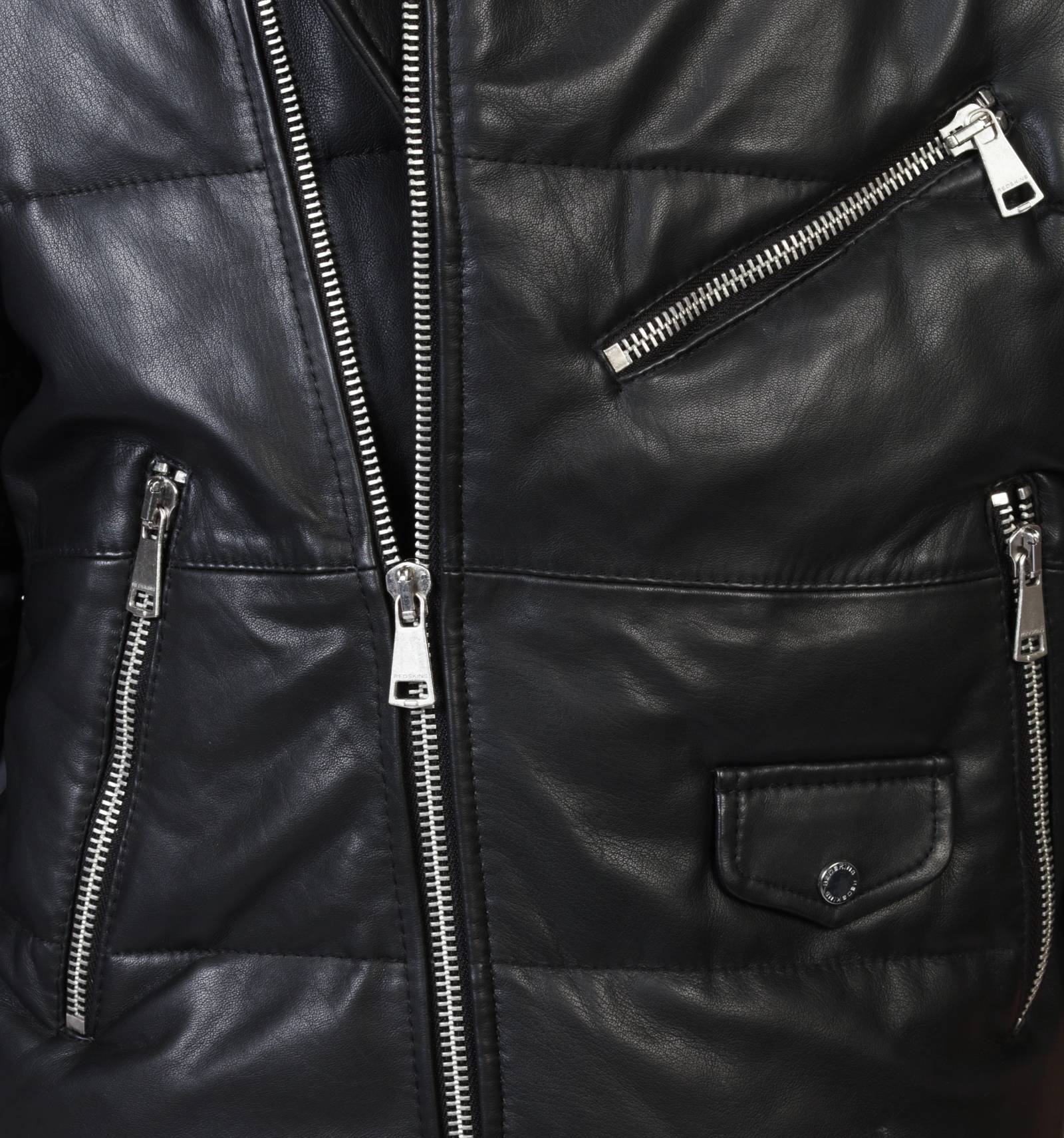 Blouson bi-matières et matelassé, le CARTEL STONES associe le cuir souple et le nylon pour une allure singulire. Inspiré d'une coupe aviateur, il est garni d'un col chemise en fourrure, d'empicements striés au dos et d'un jeu de zip pour sa fermeture, ses manches et ses multiples poches. Pice incontournable du vestiaire REDSKINS, il incarne l'identité audacieuse et créative de la maison.