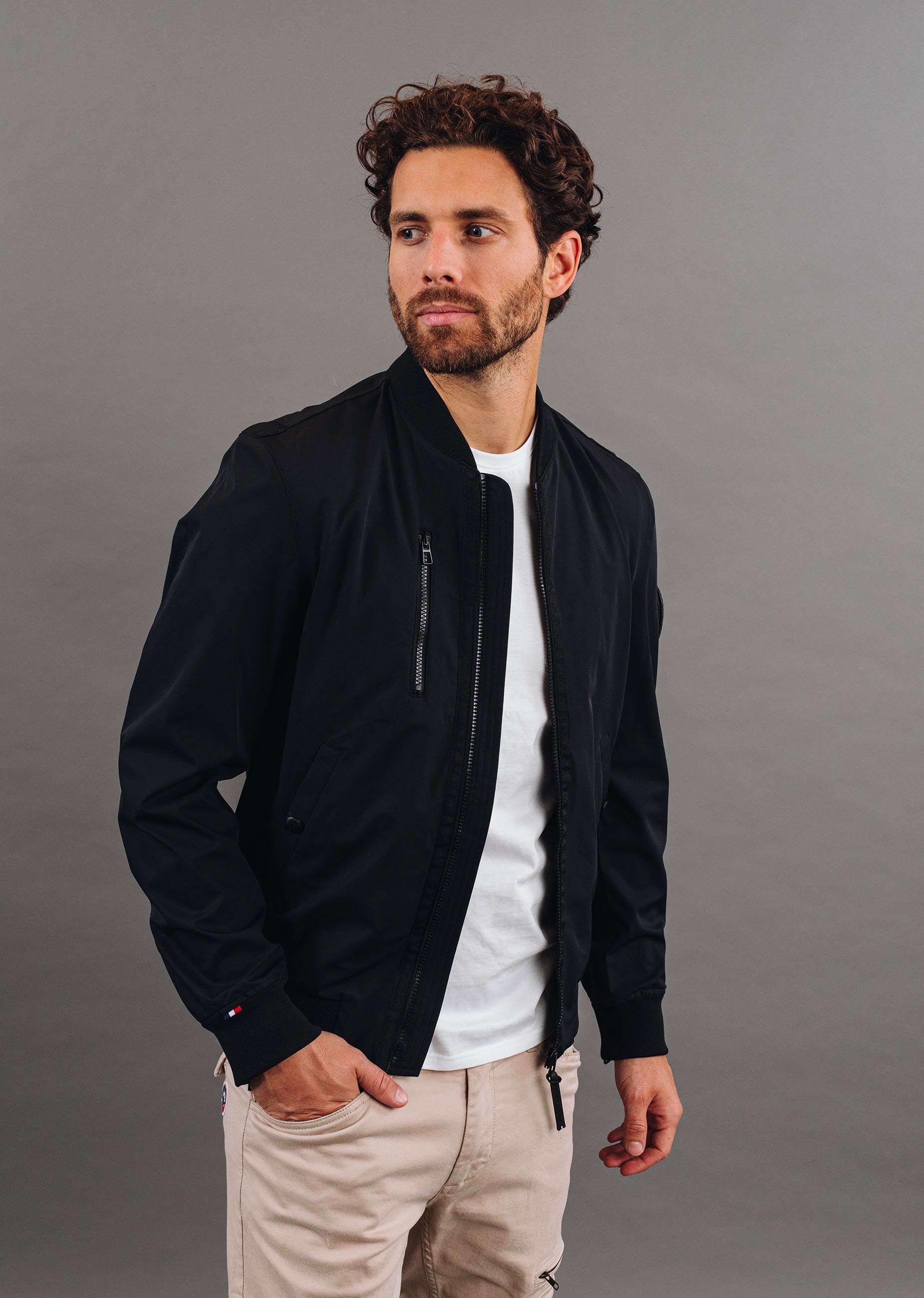 Le blouson CANON WEISER de la collection Patrouille de France est un classique qui reprend les codes du Bombers. On retrouve la mythique patate Patrouille de France sur le bras gauche, 3 poches à l'avant (2 à pressions et une zippée). Des bords-côtes aux extrêmités et un petit drapeau tricolore sur le détails de la manche droite.