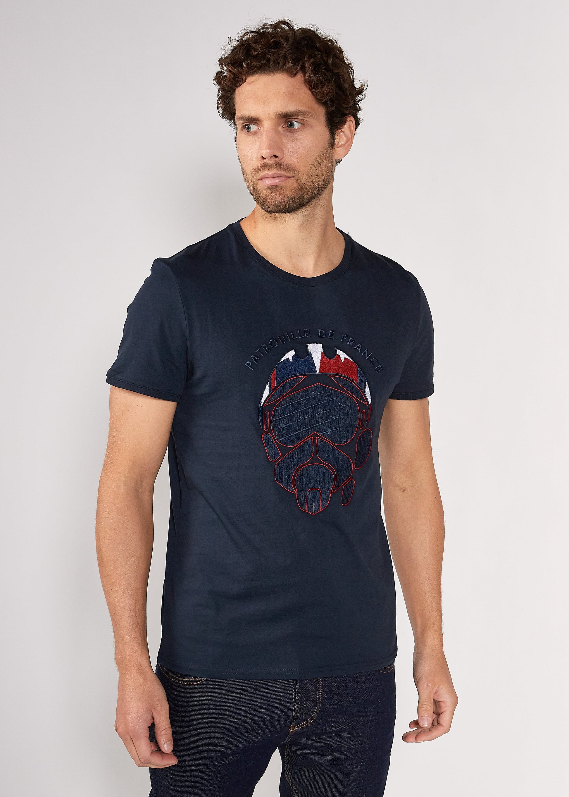Le t-shirt en coton CASK NATIONAL affiche fièrement le casque du fleuron de l'aviation française, à manche courte avec un léger détail aux coloris nationaux sur la manche gauche, il trouvra facilement sa place dans votre garde robe.
