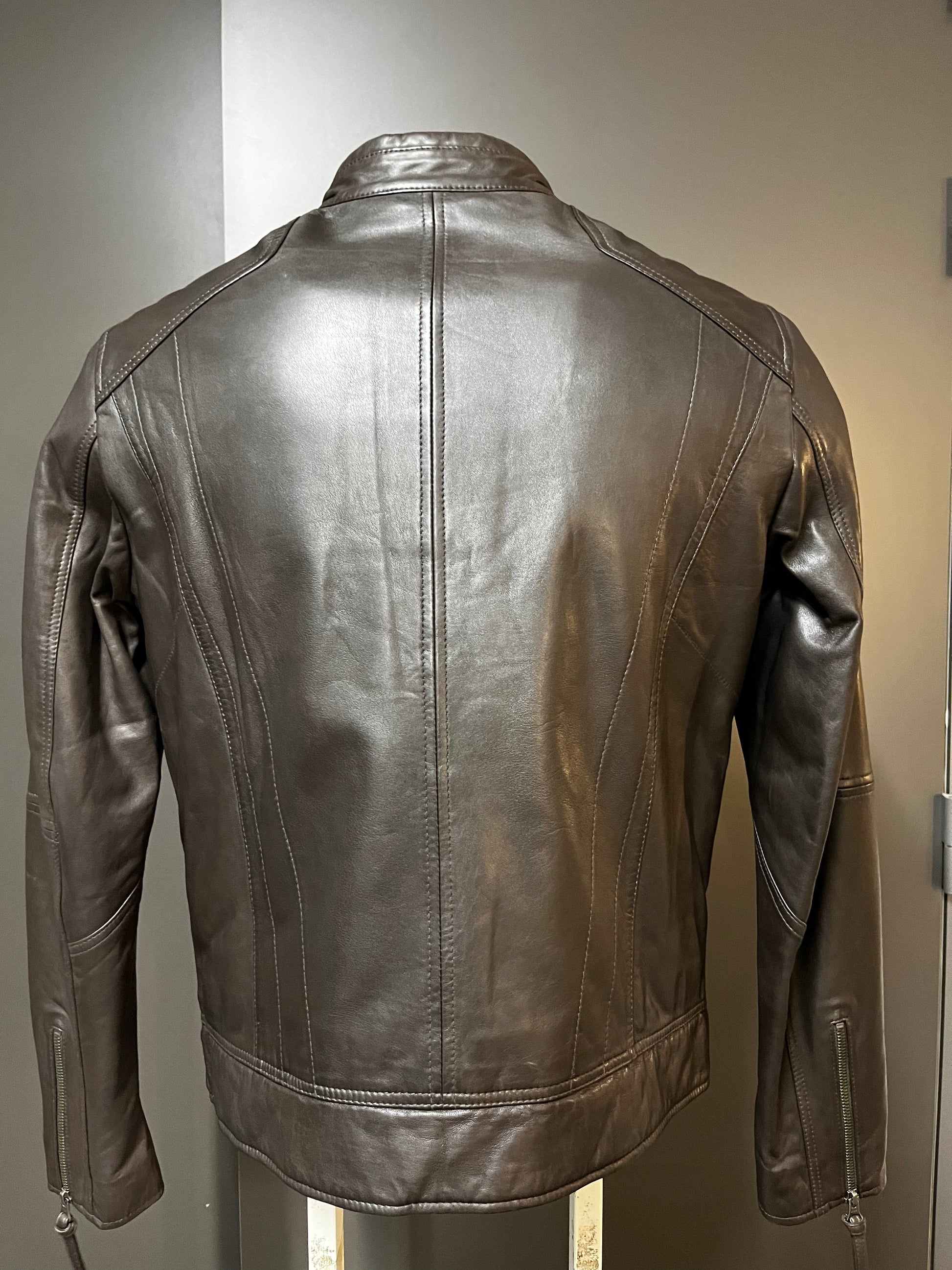 Nos vestes en cuir taillent petit, si vous avez un doute entre deux tailles, choisissez la taille du dessus.