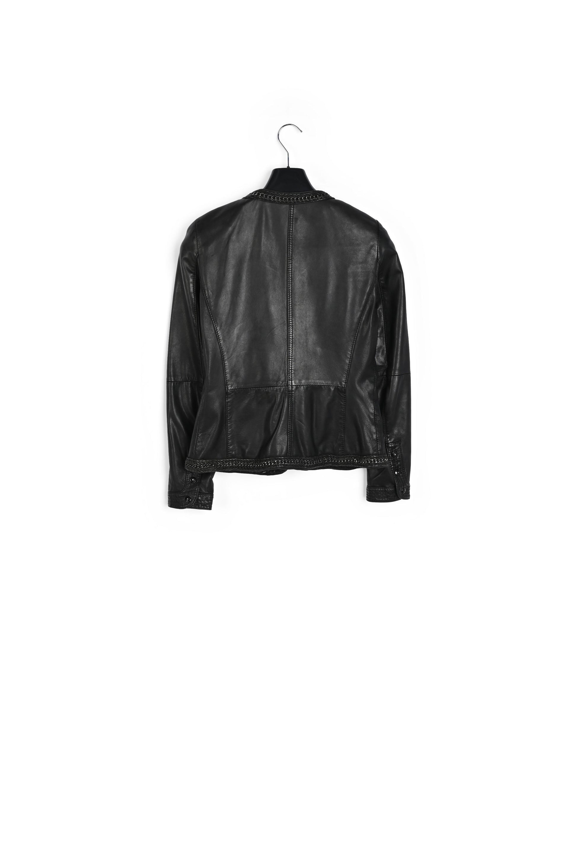 Le blouson en cuir GOLDIE PALOMA est une pièce singulière de la collection. Réalisé dans un cuir lisse, ses finitions métalliques élégantes et audacieuses apparaissent comme de véritables distinctions. Des surpiqures dans le dos et au col ainsi que des empiècements striés à la taille apportent la touche raffinée. Composition : Cuir d'agneau