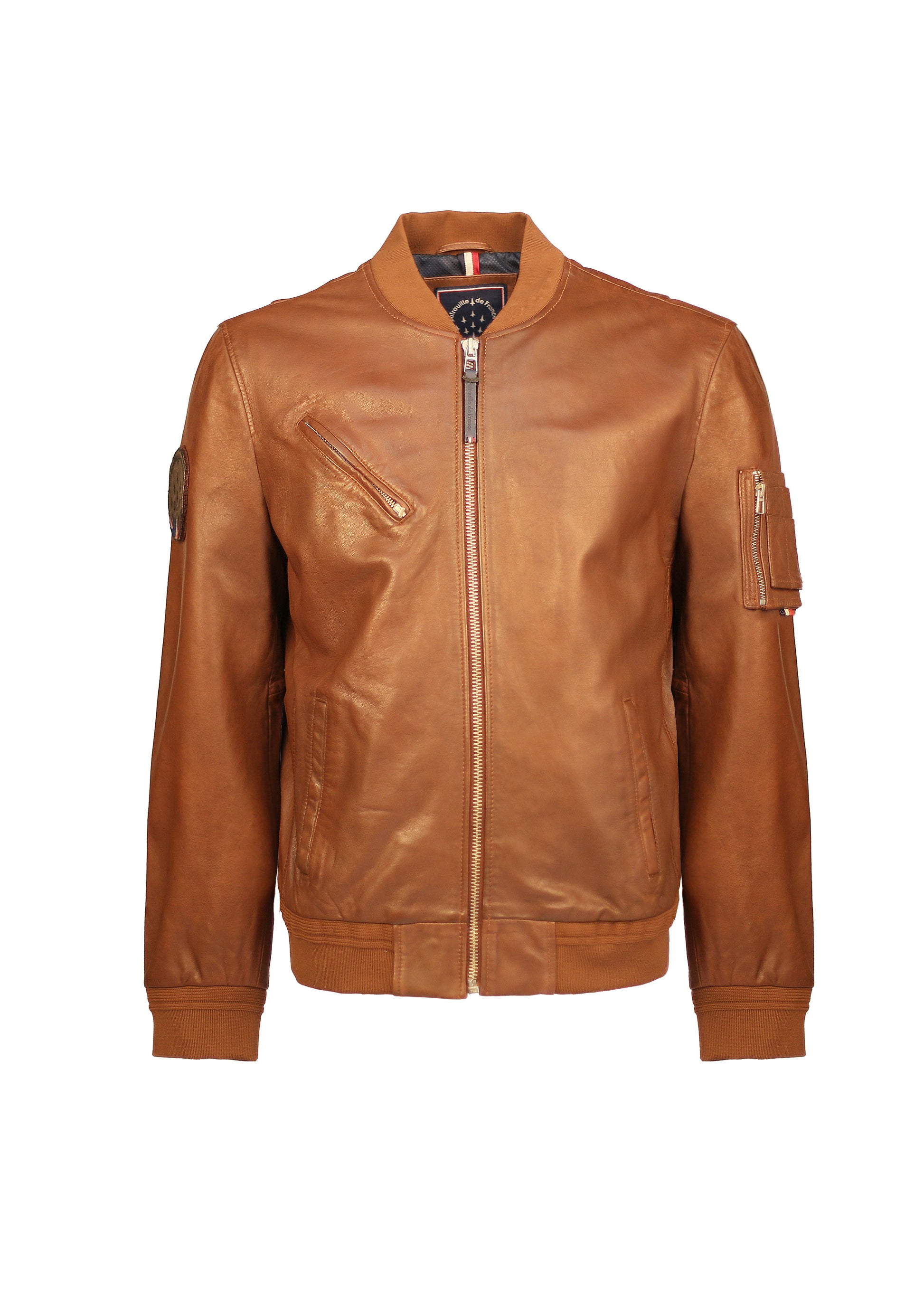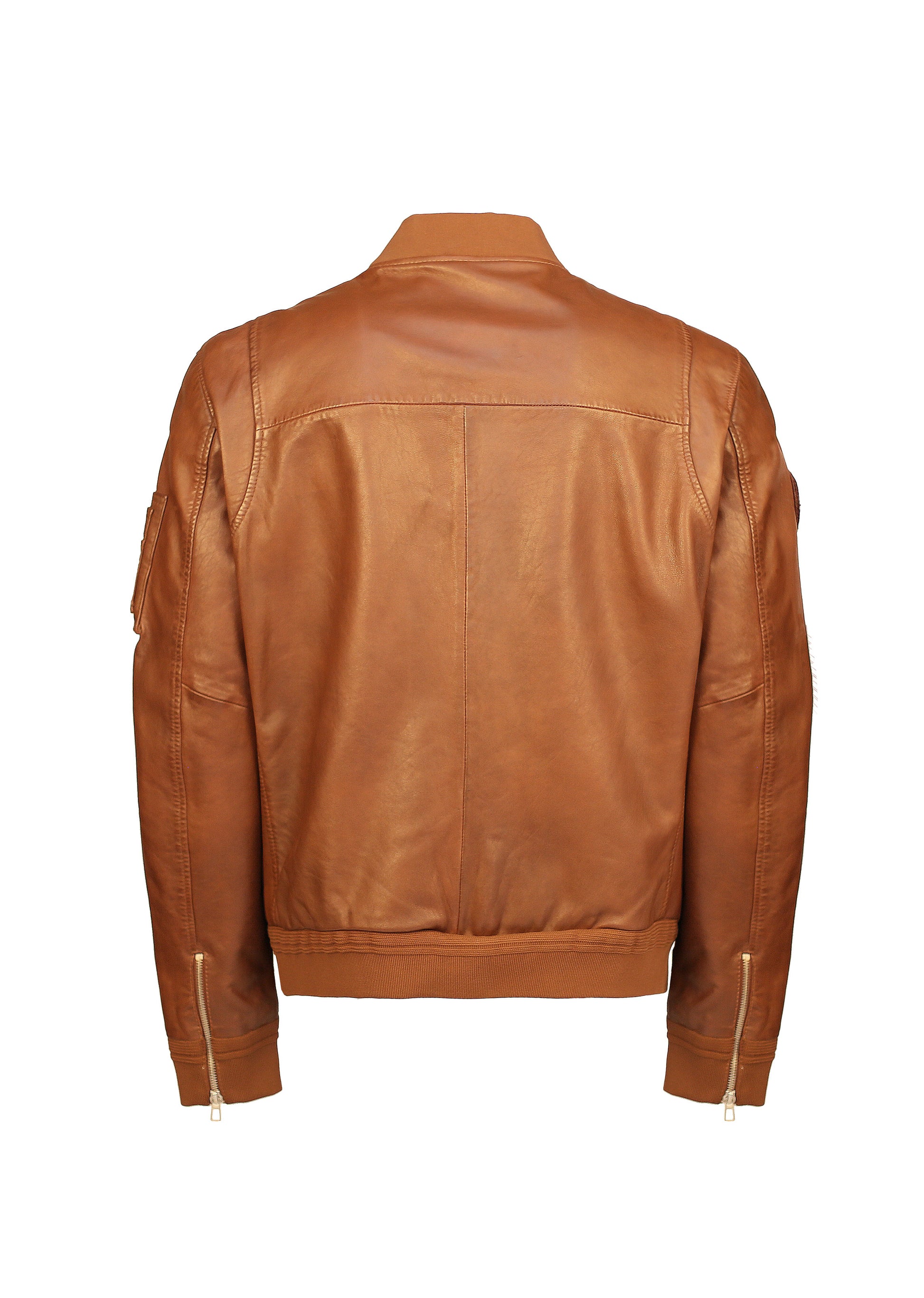 Le blouson en cuir GUN PALOMA reprend les classiques du bombers au niveau du col et des bords-côtes aux extremités.