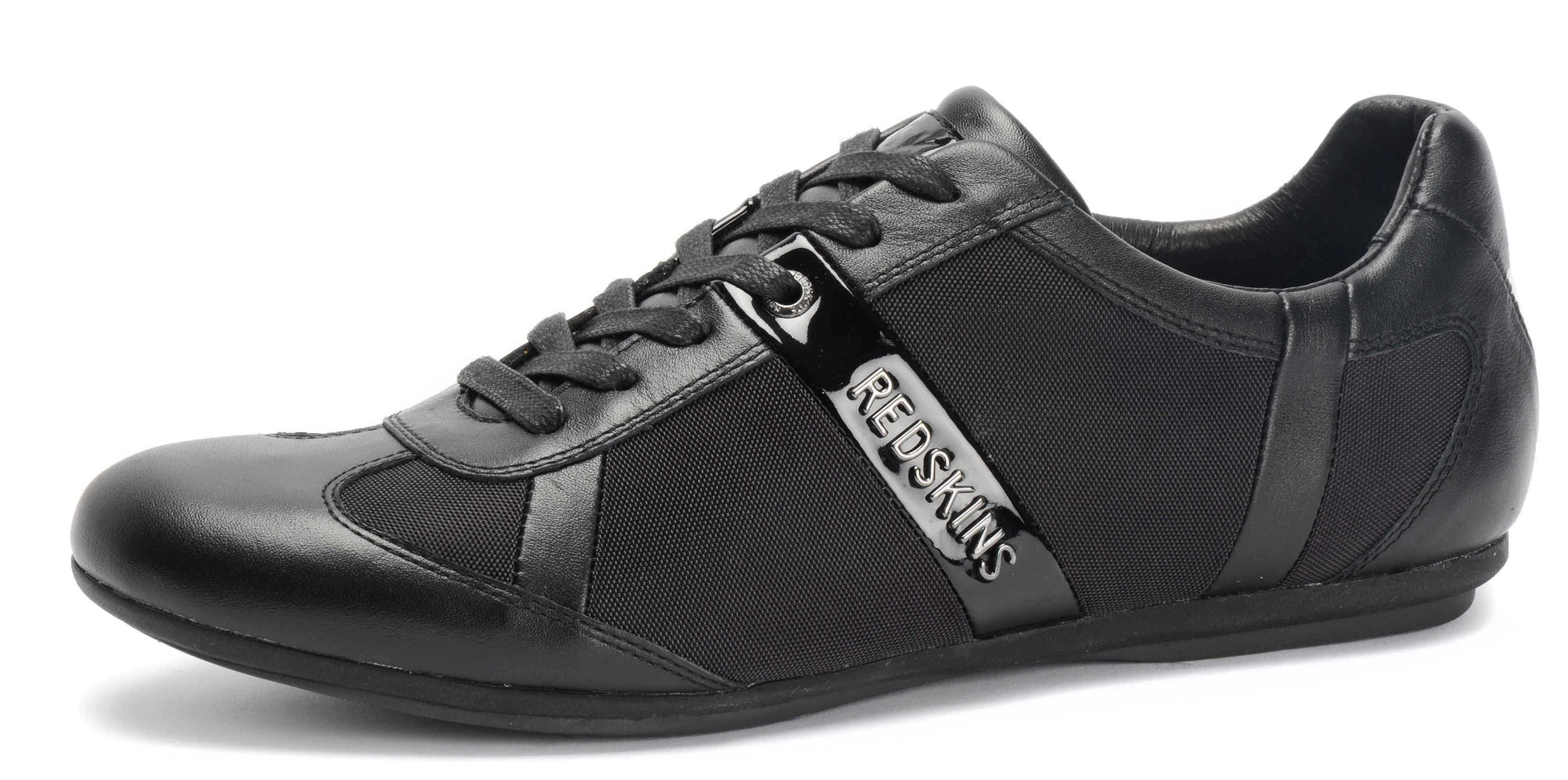 Baskets Ville, dessus Cuir et Toile avec 1 bande vernie, Semelles en Elastomère