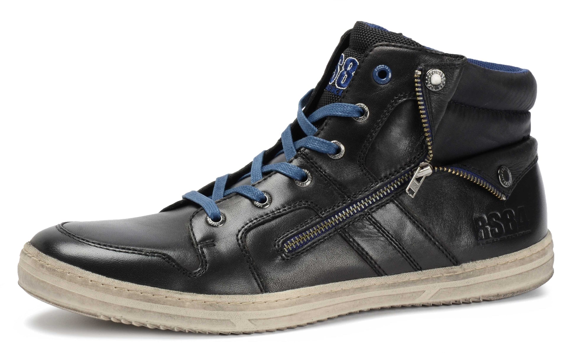 Baskets Montantes, dessus Cuir et Toile – Lacets bleus denim + Zip côté et pressions