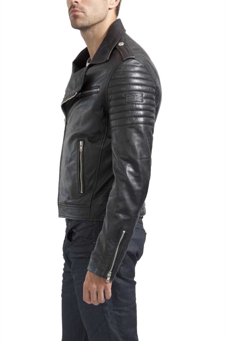 Blouson en cuir zippé - 1 poche zippée poitrine gauche - 2 poches bas zippées - Bas de manches zippées - Pattes épaules pressions - Badge en cuir haut de manche gauche - 2 poches zippées intérieures - Doublure 100 % cotton