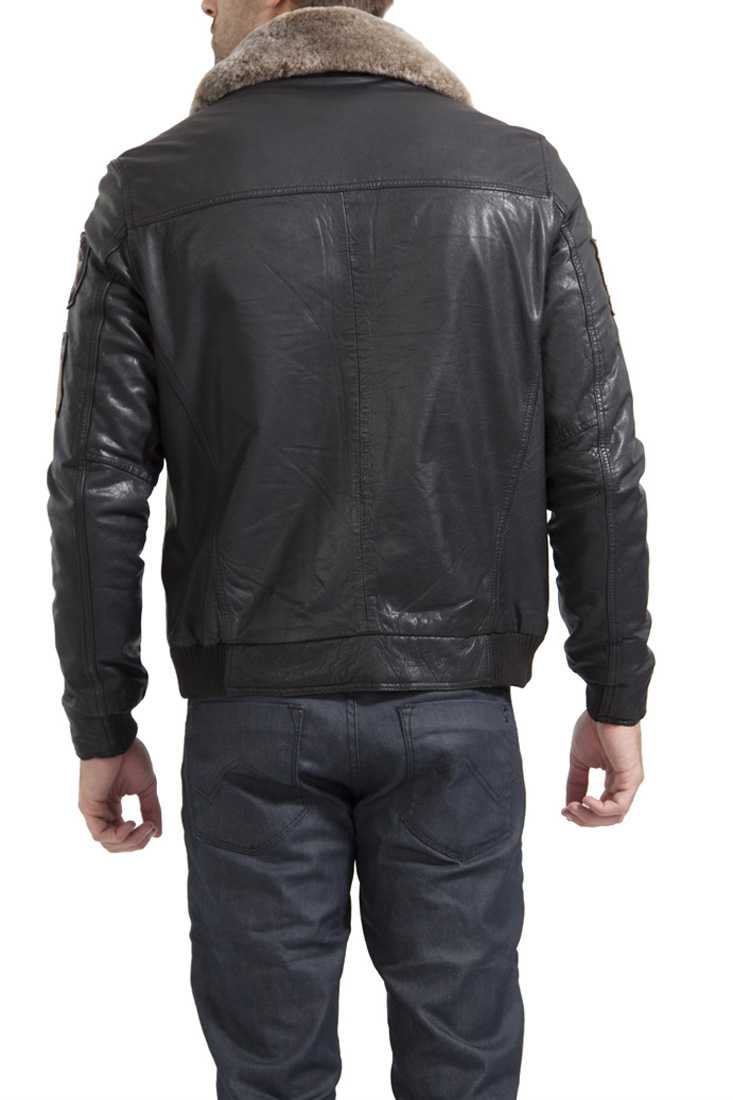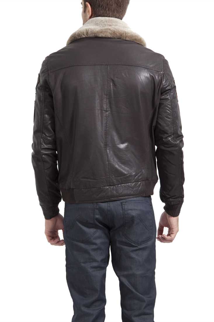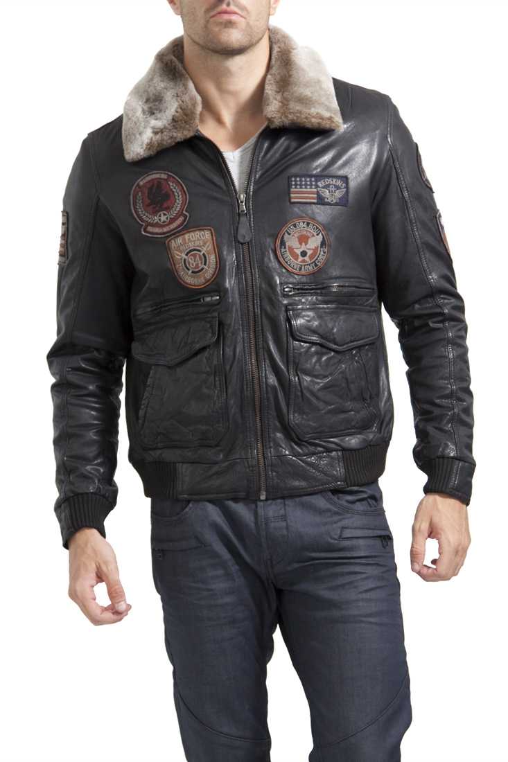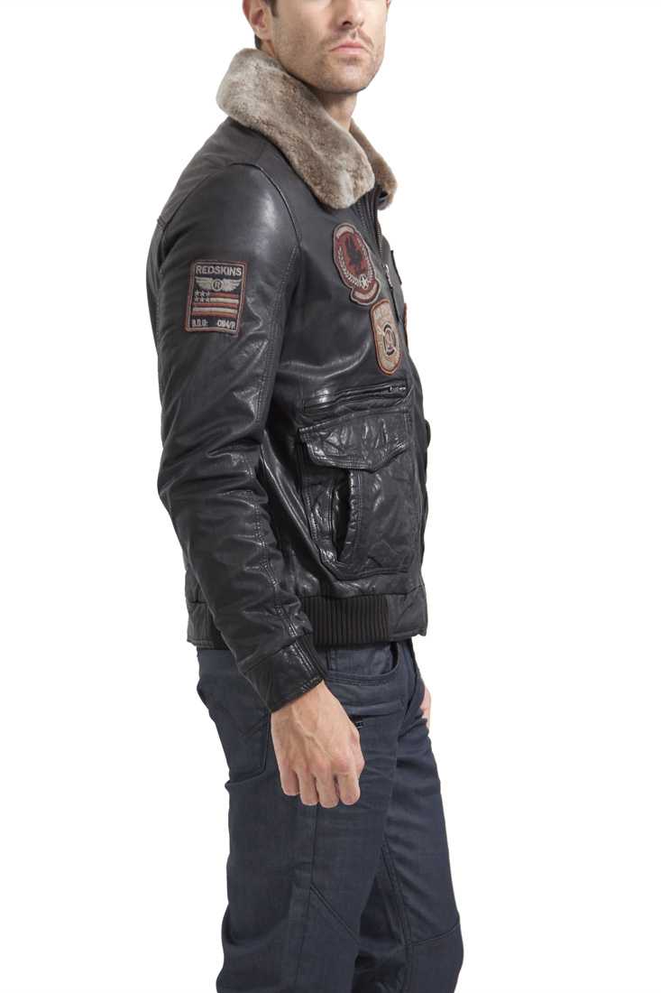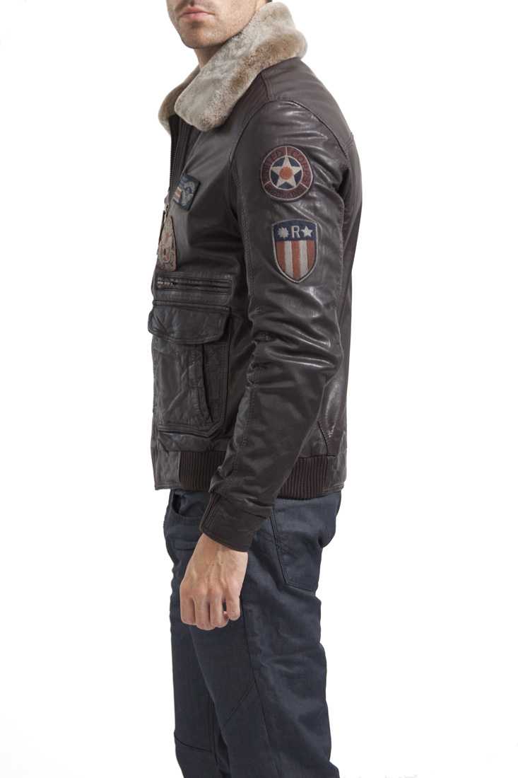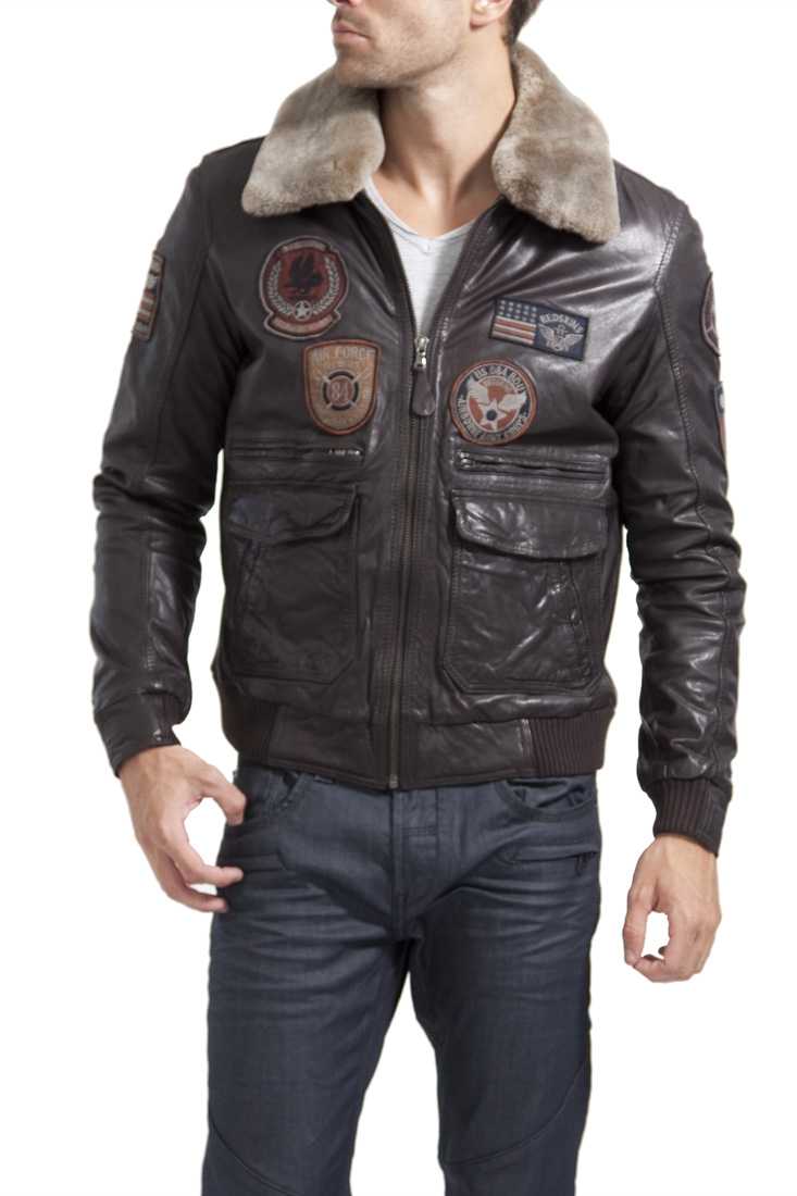 Blouson en cuir de vachette - Fermeture zippée - Col chemise + Fourrure amovible - 2 poches devant fermeture zippée - 2 poches plaquées avec rabats et ouverture côtés - 4 badges poitrine - Badge aux manches - Bord côte bas de manches - 3 poches zippées intérieures. Doublure 100 % Cotton