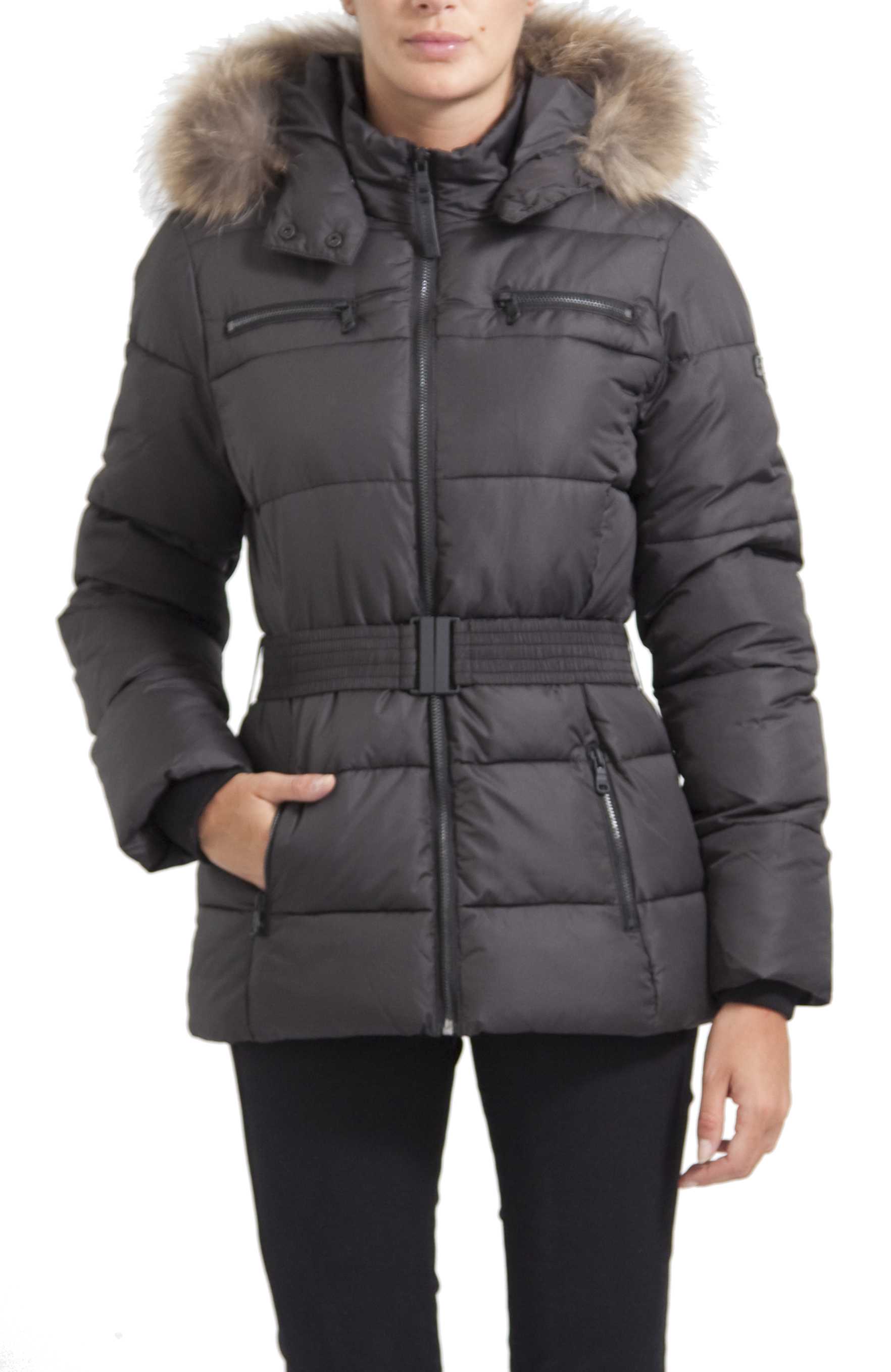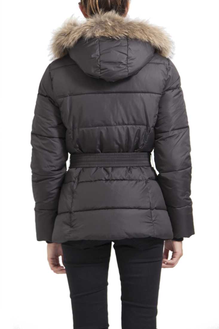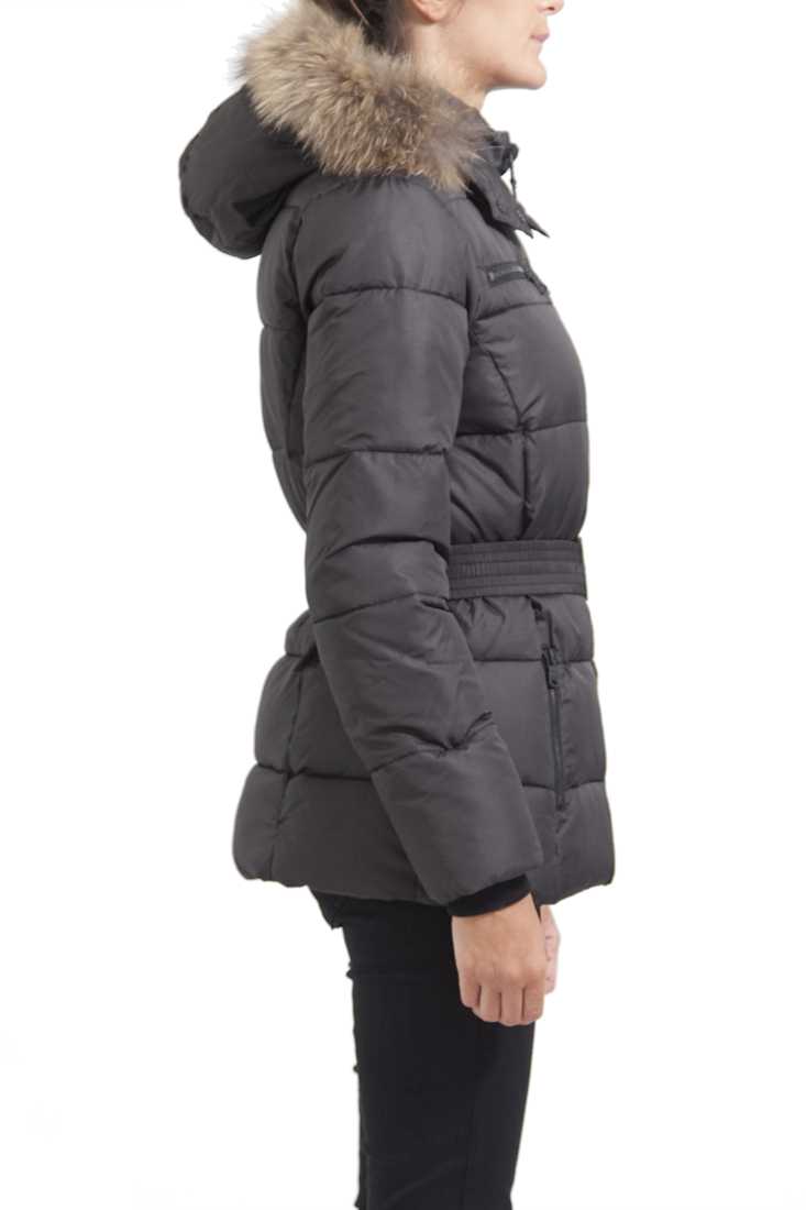 Doudoune à capuche amovible avec col en Racoon. Garnissage 100 % polyester. Accessoires : boutons, zips. Couleurs métal Noir. Plaque métal sur la manche gauche au porté. Poches zippées a la poitrine et en bas. Doublure 100% Polyester