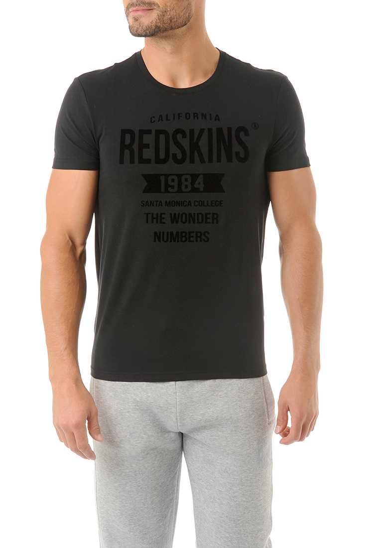 Tee-shirt en Coton élasthanne, Col rond, Manches courtes - Impression effet velours sur la poitrine - Petite impression contrastée en relief sous l'encolure dos.