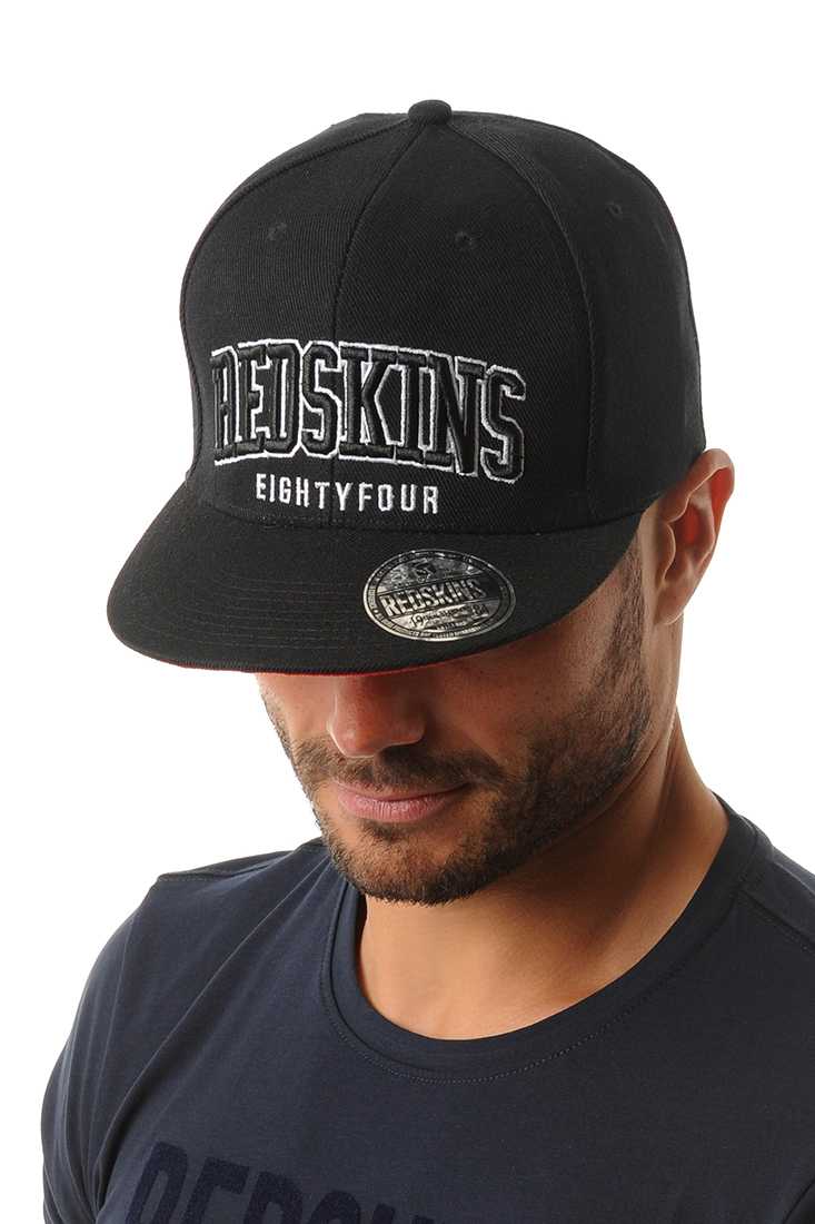 Casquette en twill de coton avec le dessous de la visière contrasté rouge - Broderie gonflante bi-colore noir et blanc sur le devant - Système ajustable au dos en plastic ton sur ton.