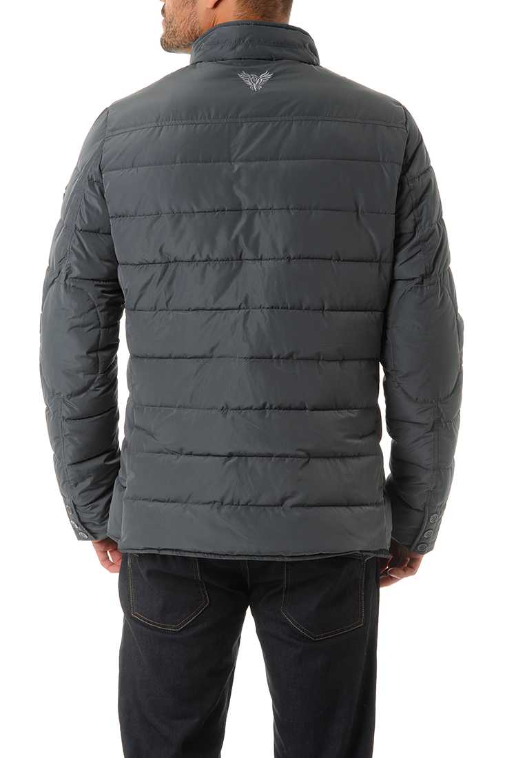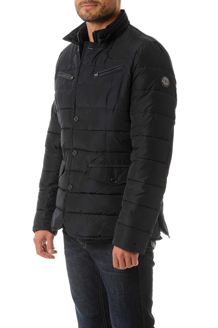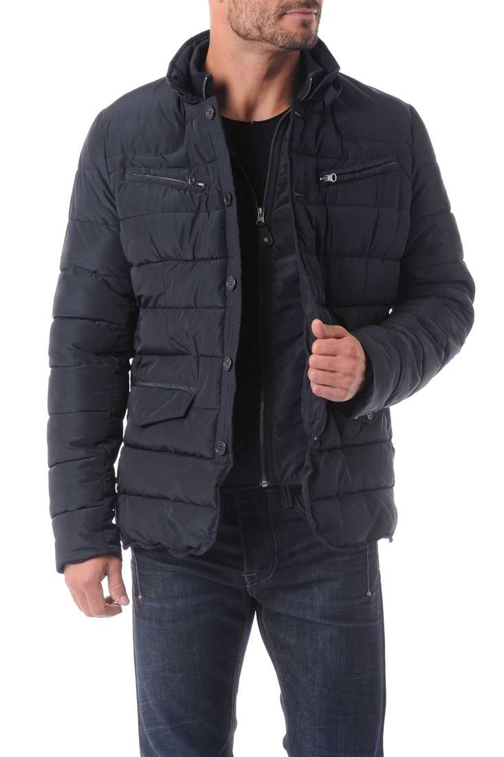 Veste doudoune esprit Blazer en Polyester - Double fermeture milieu devant : faux gilet en-dessous avec zip métal et petit col montant en bord côté & du côté extérieur, Fermeture par bouton plastique et col montant - 2 poches plaquées en bas avec rabat boutonné - 2 poches zippées sur la poitrine - Poignet droit avec fausse fente boutonnée - 2 fentes dos avec 1 pression cachée - Matelassage horizontal - Coudières et empiècement épaule ton sur ton - Badge rond cuir/métal cousu sur la manche gauche au porter et petite broderie ton sur ton sous l'encolure dos. À l'intérieur : doublure anthracite avec sérigraphie Moto contrastée sur le milieu dos - 2 poches passepoilées vertical. Garnissage : 100 % Polyester.
