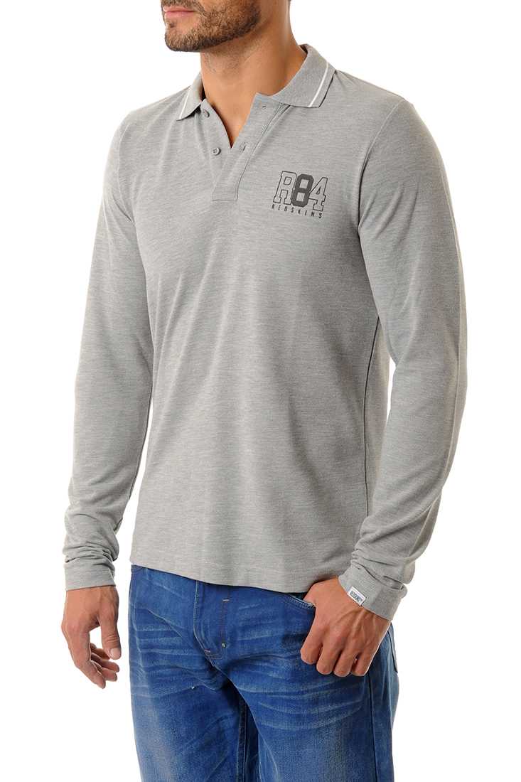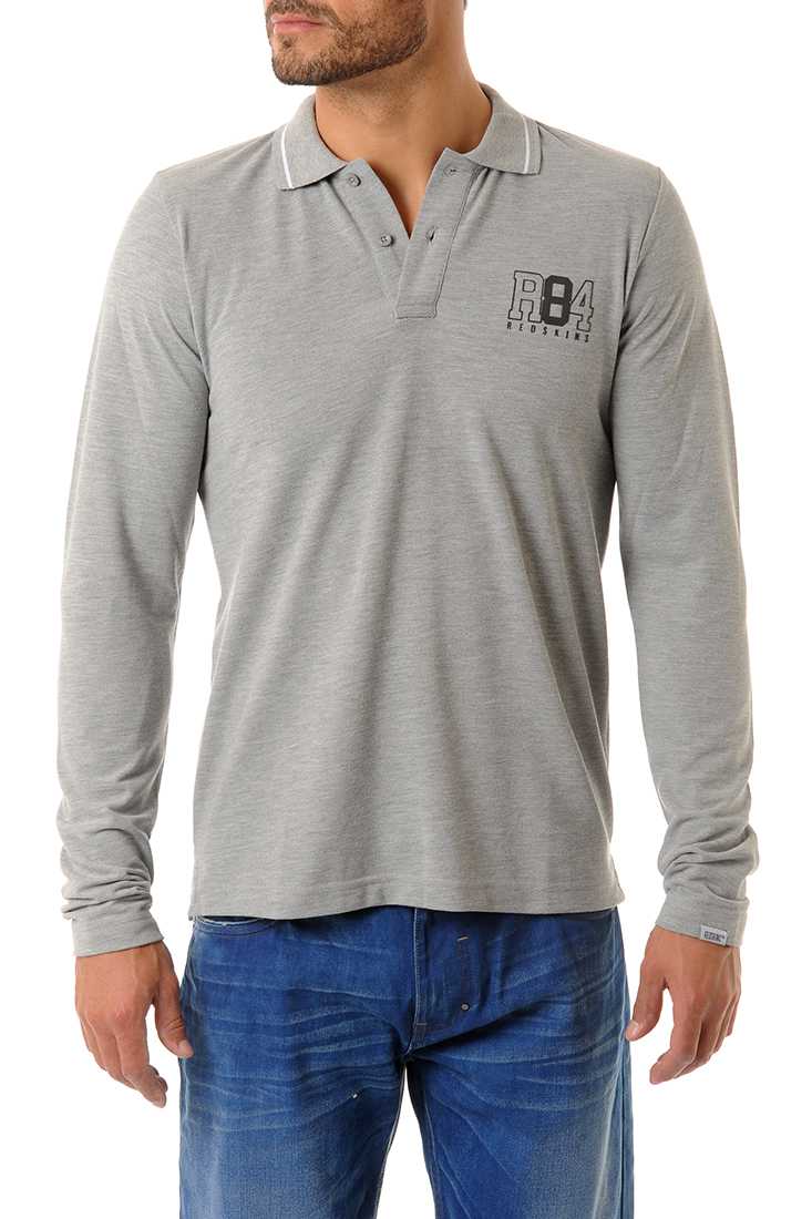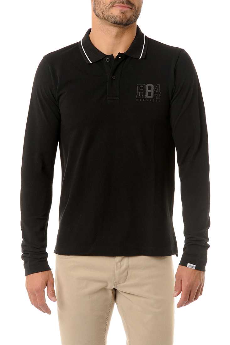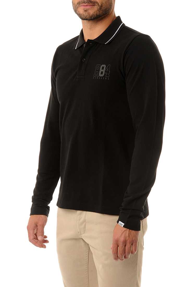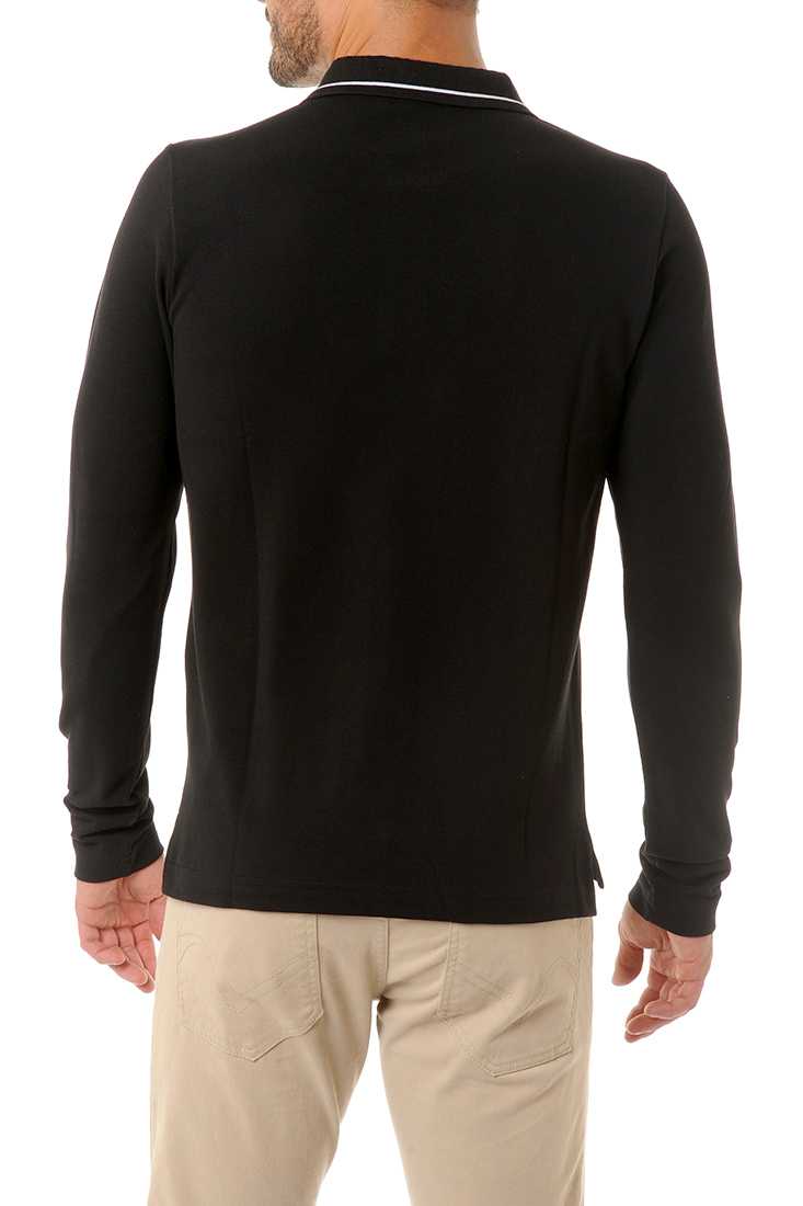 Polo en piqué de Coton, Manches longues, Rayure blanche dans le col - Patte de boutonnage 2 boutons - Petite sérigraphie noire en relief sur la poitrine - Petit label blanc cousu en bas de la manche gauche.