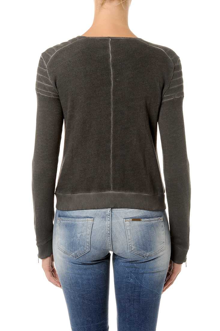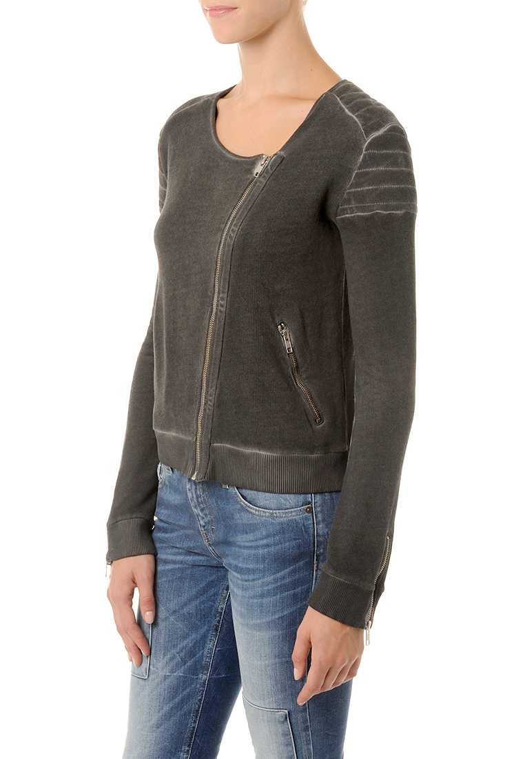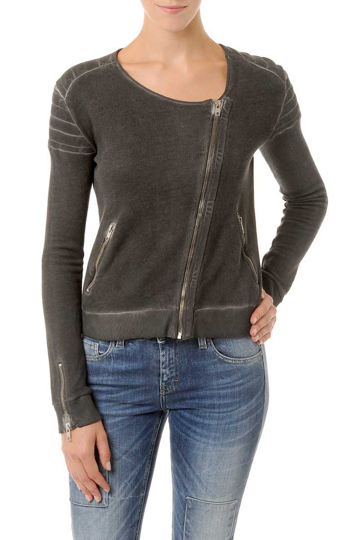 Sweat-shirt en coton, zippé en biais, type Motard, Col rond. Poches zippées. Bas de manches & bas de vêtement en bord côte. Empiècement épaules et haut de manches surpiqués. Bas de manches zippés.