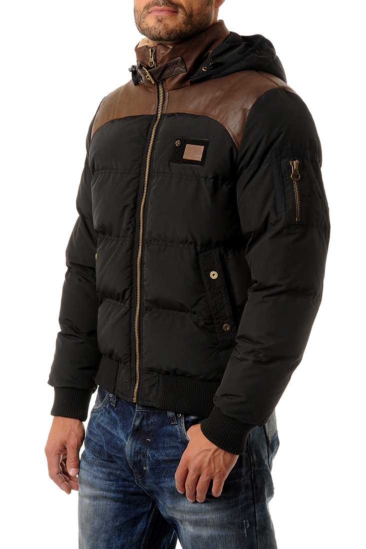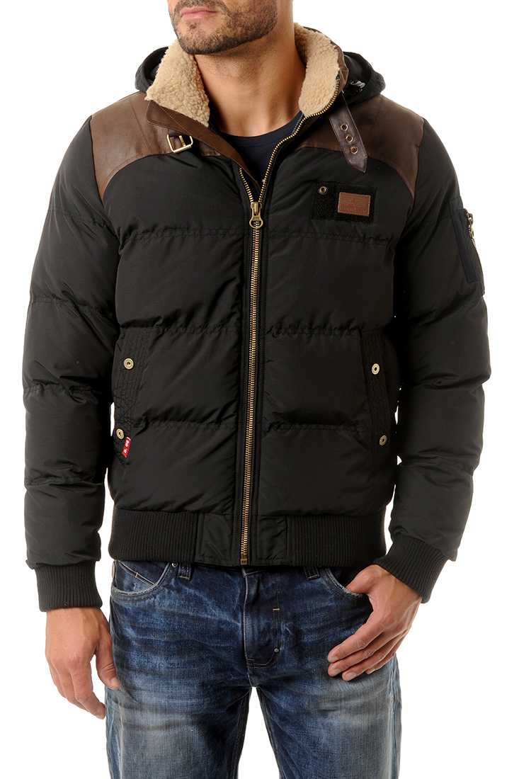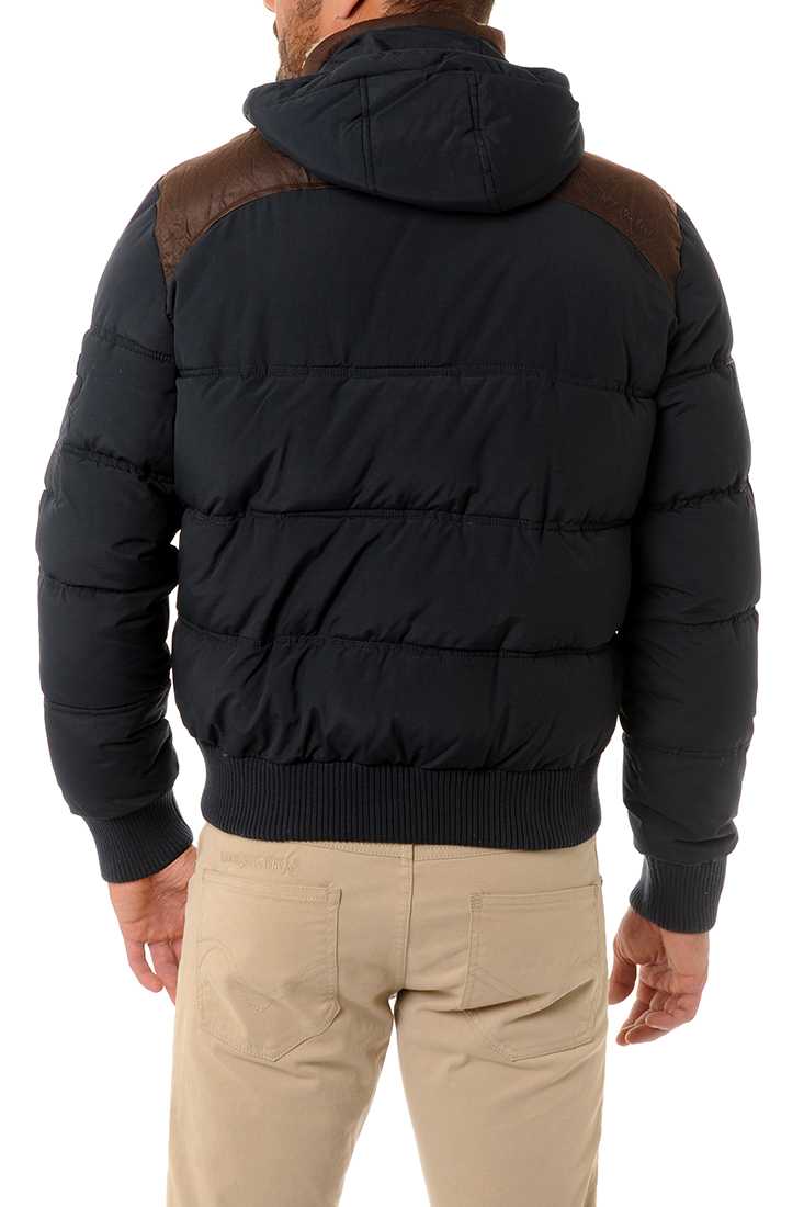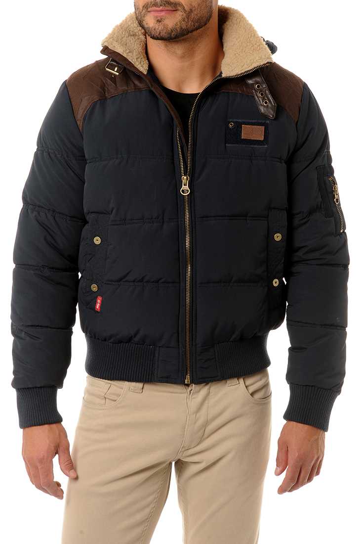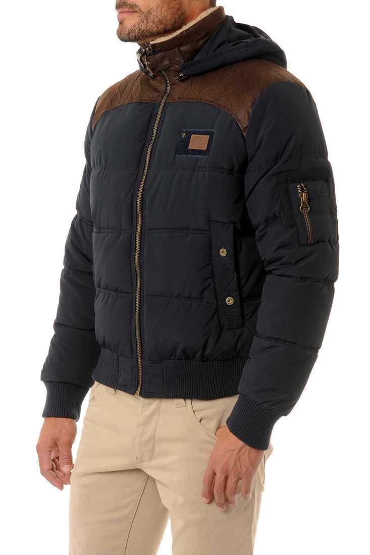 Doudoune bi-matière en Nylon, fermeture milieu devant par un zip métal - Col montant qui se ferme par une boucle à ardillon et l'intérieur en sherpa beige - Capuche amovible avec cordon de serrage intérieur - Empiècements contrastés marron en matière enduite aux épaules, en haut du dos et l'extérieur du col - 2 poches pressions en bas dont celle de droite avec un petit label de marque rouge - Bord côte aux poignets et bas de vêtement - Badge cuir marron cousu sur base de bande auto-agrippante velours fixé sur la poitrine côté gauche - Petite broderie marron sur le côté de l'empiècement dos. À l'intérieur : doublure contrastée et parmenture en matière jeans avec 2 poches passepoilées verticales. Garnissage : 100 % Polyester.
