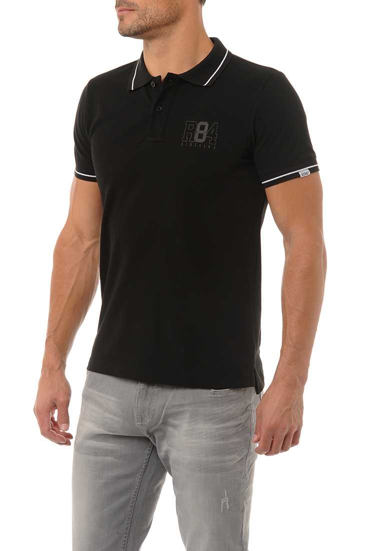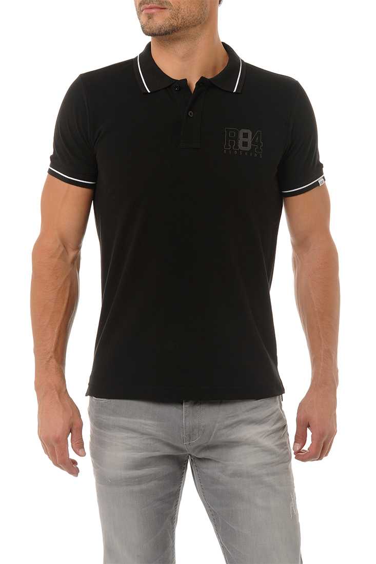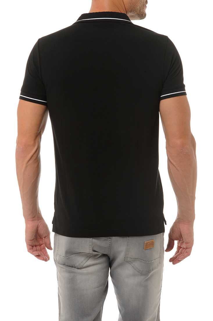Polo en piqué de Coton, Manches courtes, Rayure blanche dans le col - Patte de boutonnage 2 boutons - Petite sérigraphie noire en relief sur la poitrine - Petit label blanc cousu en bas de la manche gauche.