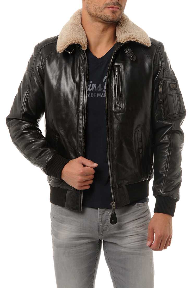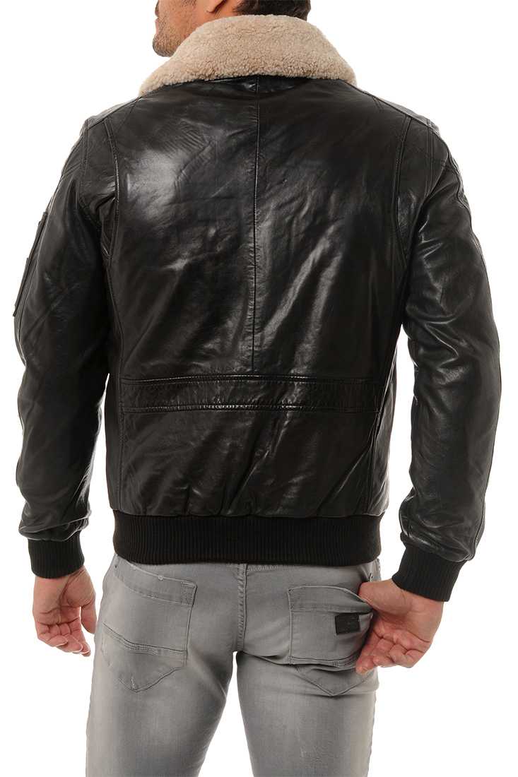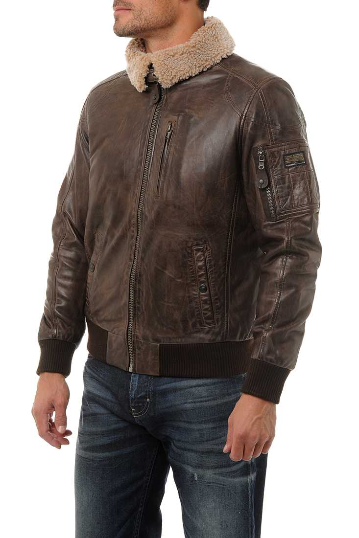 Blouson en cuir de mouton - Fermeture zippée - Col montant avec boucle + Fourrure amovible - Ceinture et poignets en bord côte - 1 poche zippée poitrine gauche - 2 poches bas à pressions - 1 poche manche zippée - 1 poche intérieur zippée + 1 poche avec badge "Redskins" plaquée et zippée - Doublure Polyester et Polyamide.