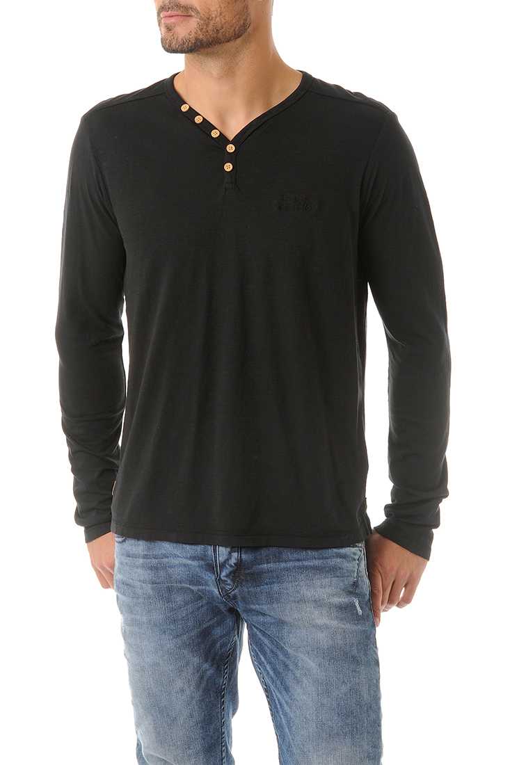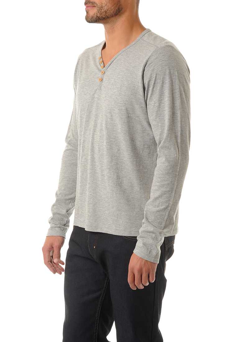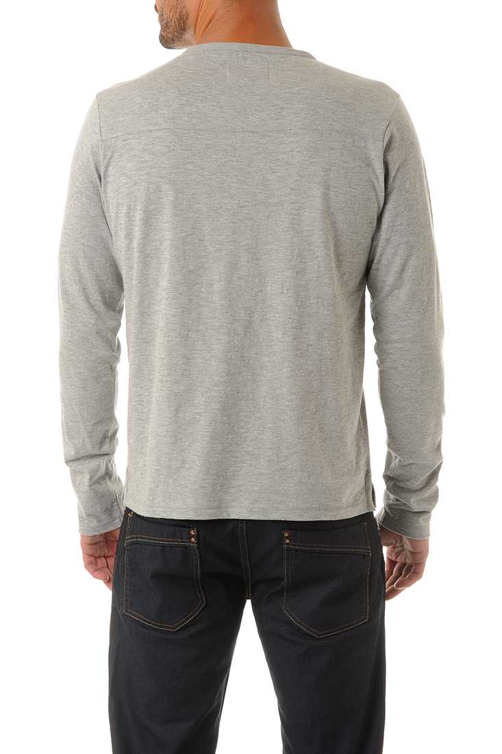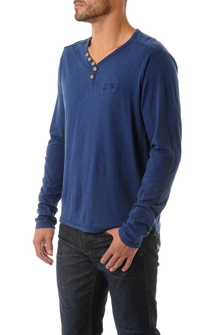 Tee-shirt en Coton flammé, Manches longues, Col tunisien à boutons - Petite broderie poitrine ton sur ton et petit badge camel cousu en bas à droite.