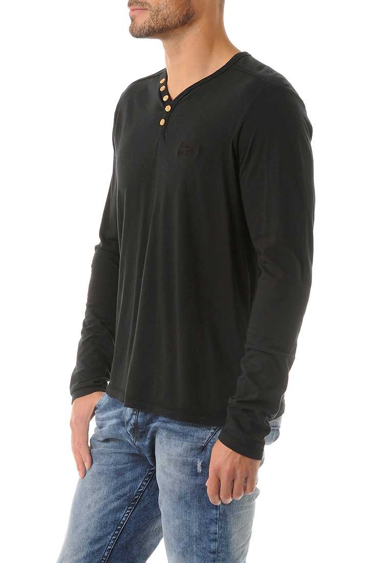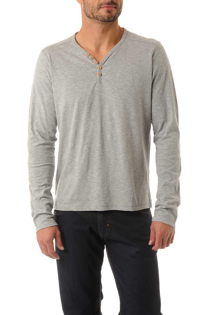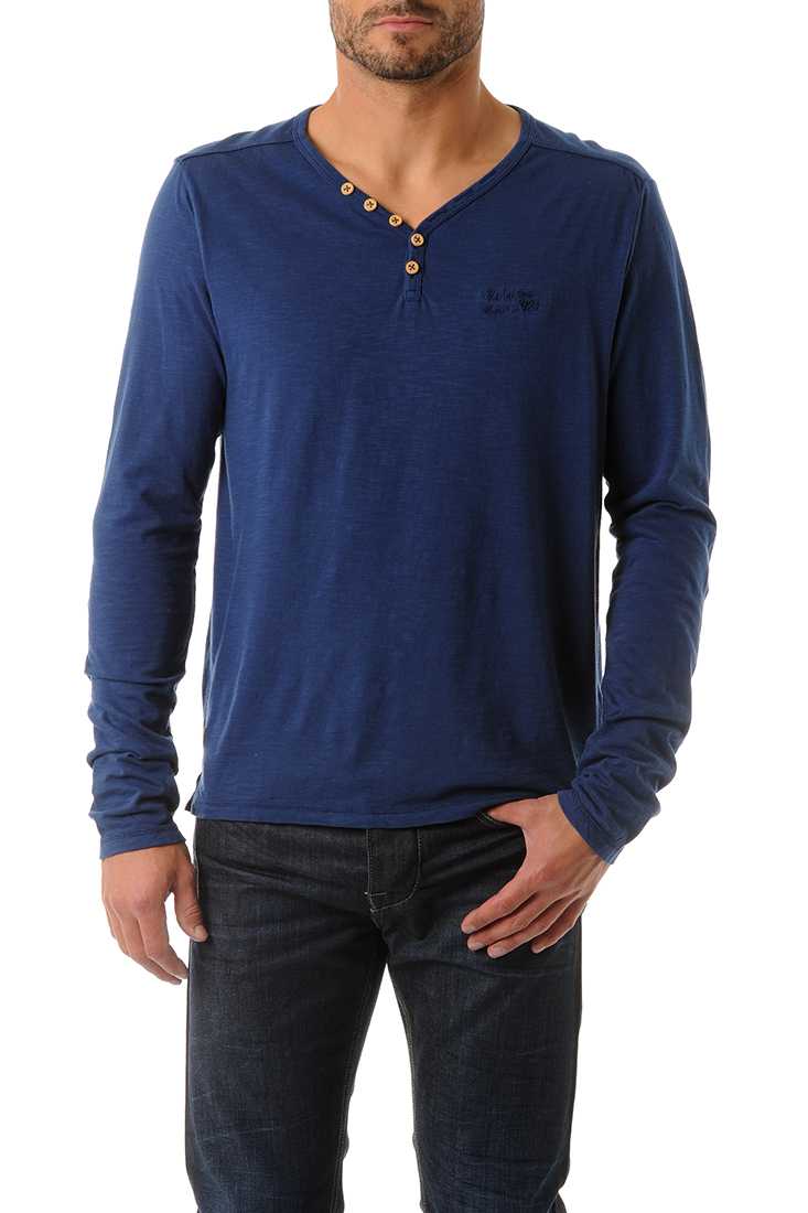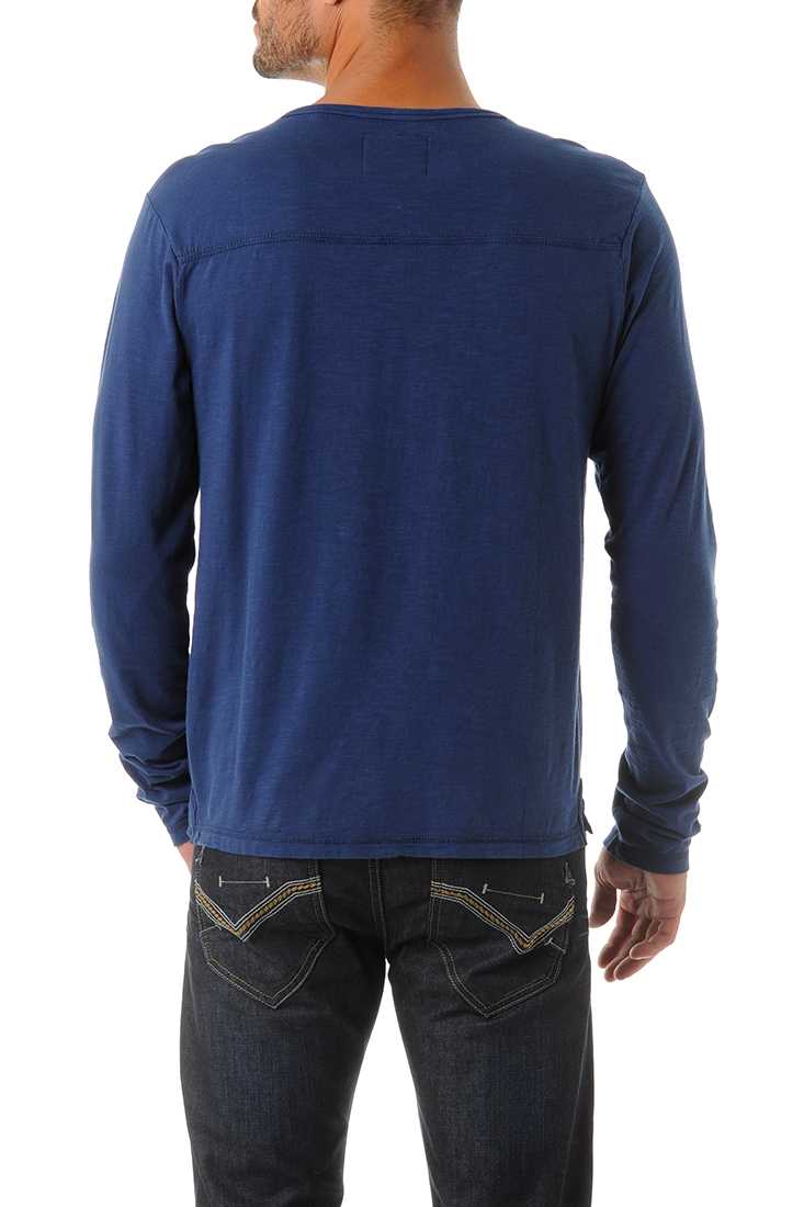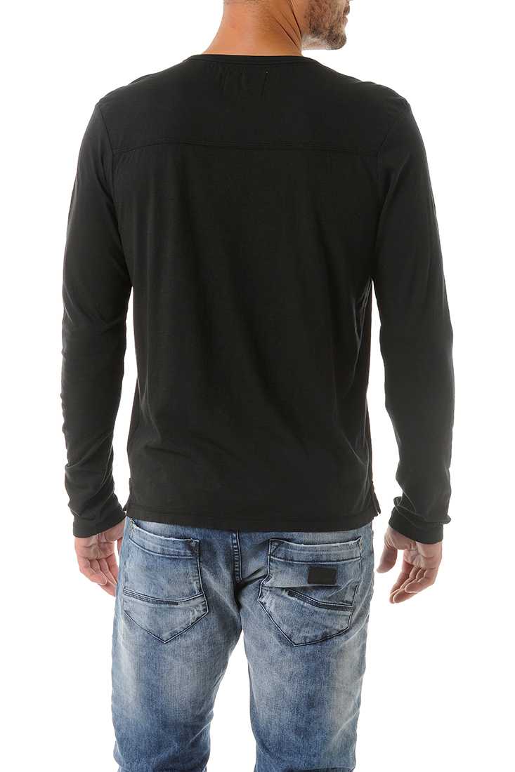 Tee-shirt en Coton flammé, Manches longues, Col tunisien à boutons - Petite broderie poitrine ton sur ton et petit badge camel cousu en bas à droite.
