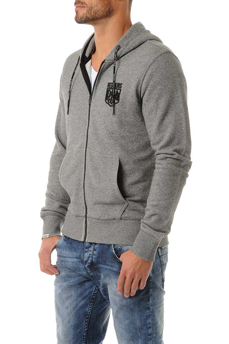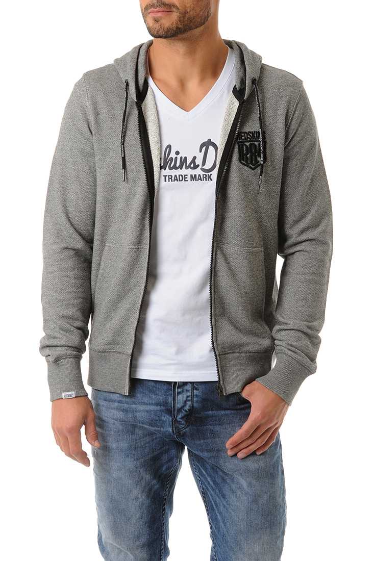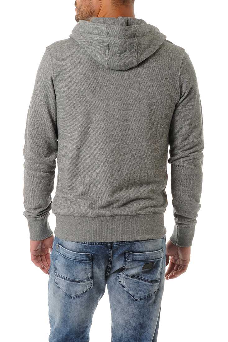 Sweat-shirt en Coton & Polyester, Molleton fin non gratté, moucheté, à capuche avec cordon de serrage rond personnalisé - Ouverture milieu devant par un zip plastique - 2 poches kangourou devant - Sérigraphie ton sur ton effet gomme sur la poitrine – petit label cousu à cheval sur le bord du poignet droit.