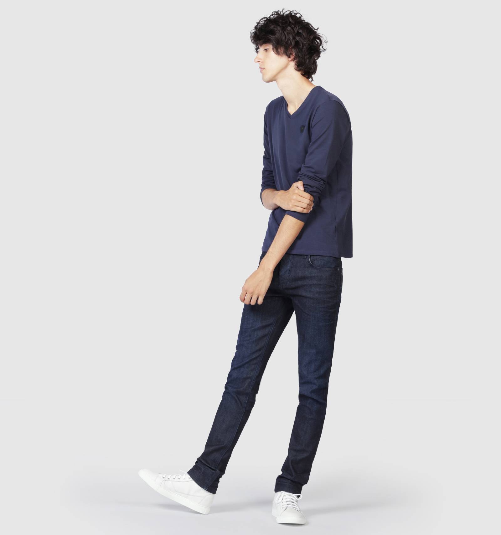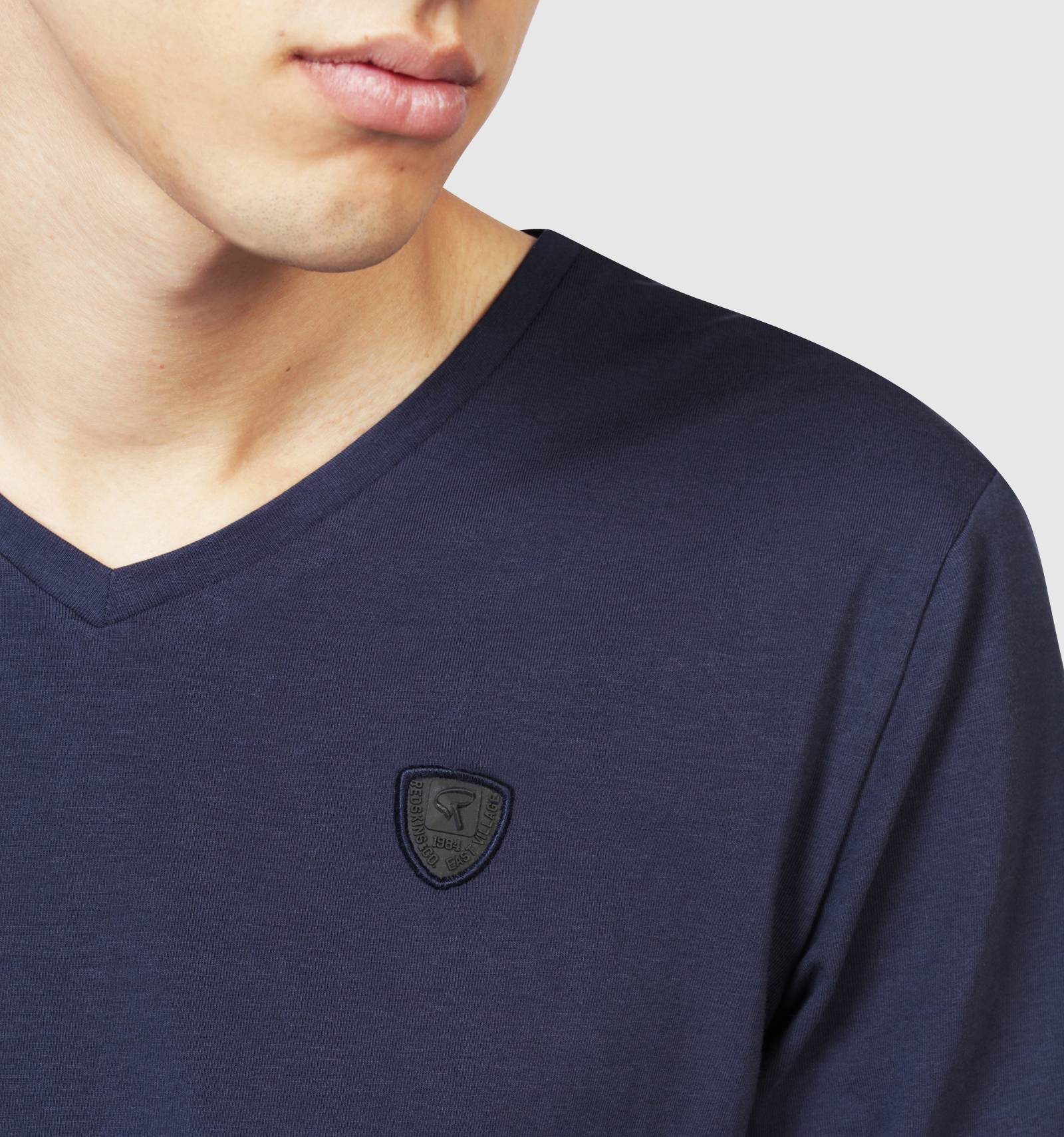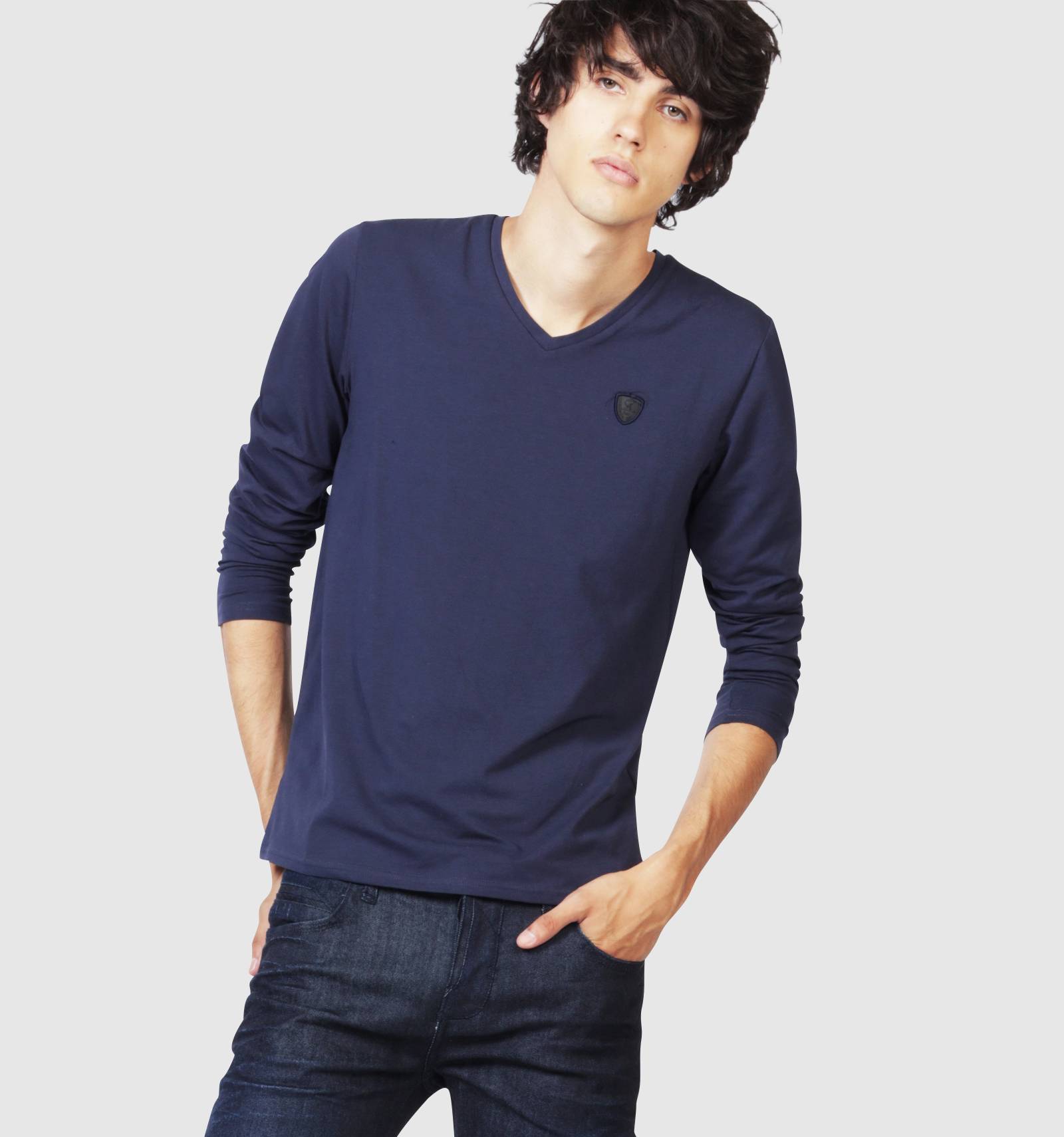 Le t-shirt manches longues AIKIDO CALDER est un essentiel du vestiaire masculin. Confectionné en coton marine, sa coupe ajustée, son col V ourlé et l'écusson en gomme placé à la poitrine en font une pice à la fois confortable et élégante.