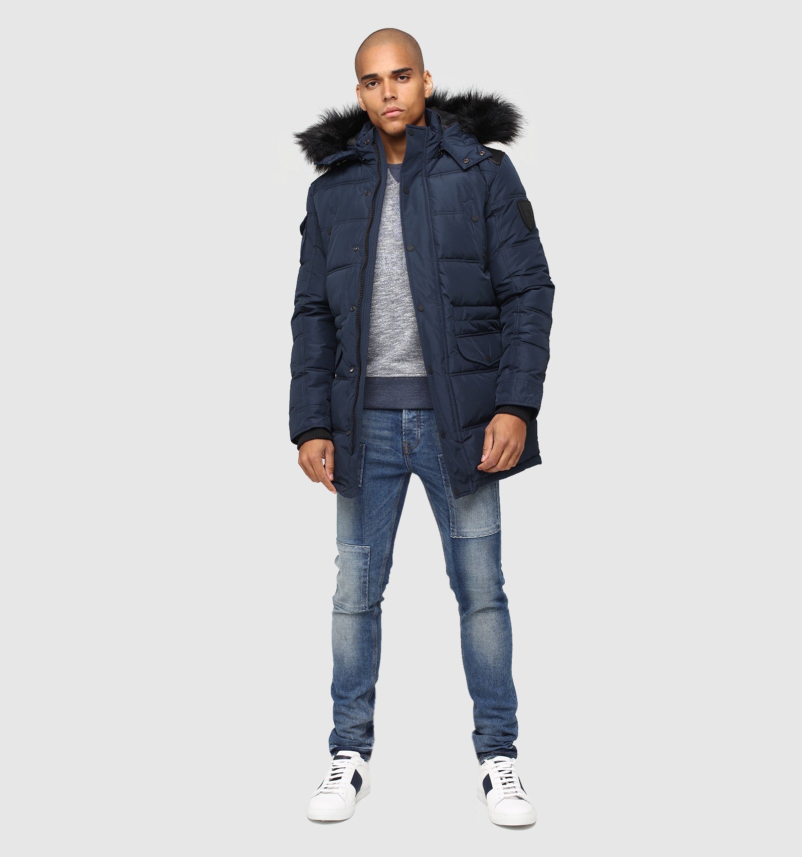 Sa coupe trois quarts apporte à la doudoune en nylon bleu marine matelassé un aspect à la fois sophistiqué et décontracté.