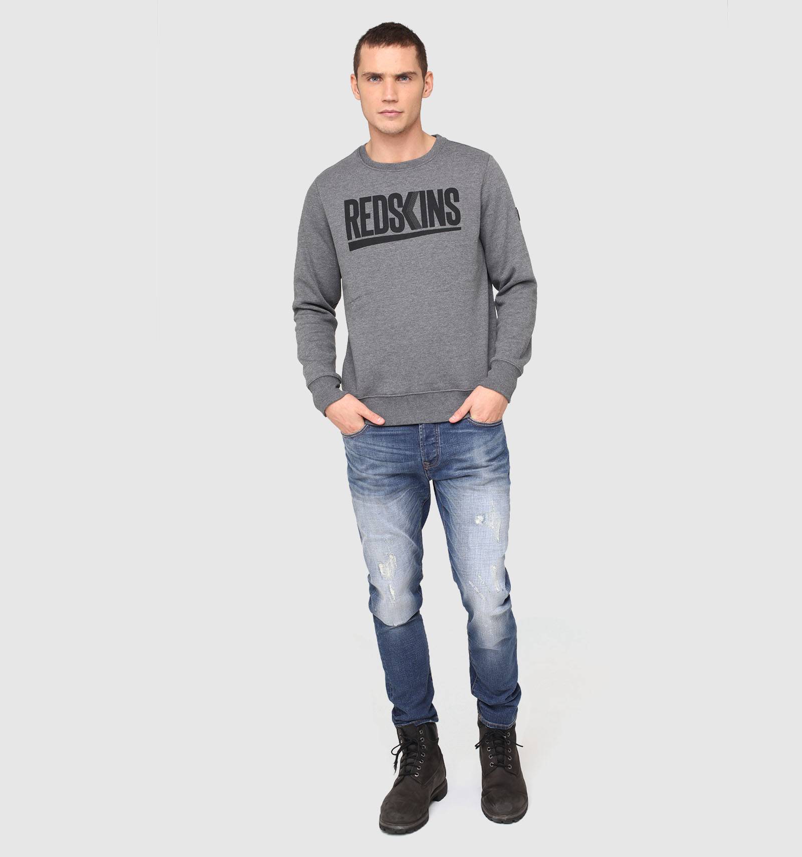 A la fois décontracté et élégant, le sweat CHAPAS POSTER en molleton gris chiné incarne le sportswear raffiné: la coupe est ajustée par du bord-côte à la ceinture, aux poignets et au col et une inscription REDSKINS orne le devant.